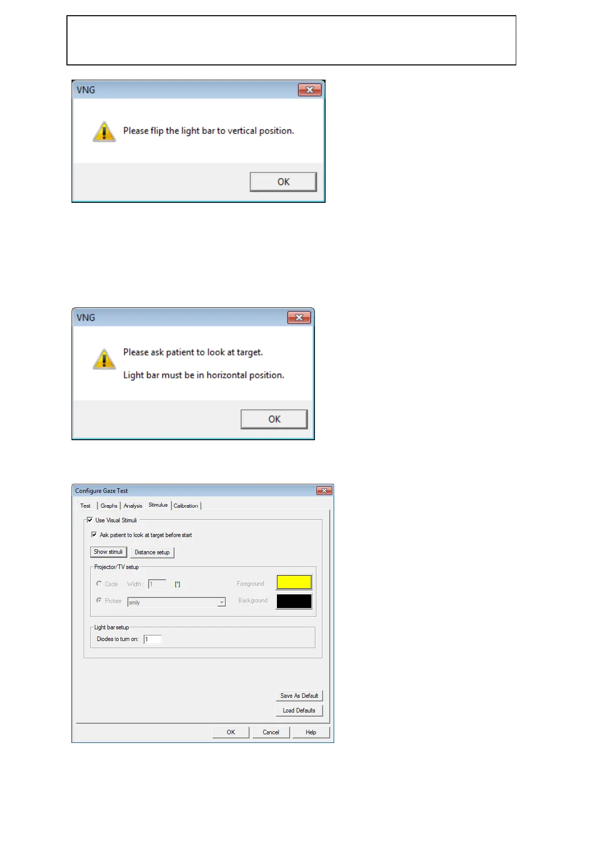 endast användas vid blicktest. Användaren måste komma ihåg att vända ljusstaven när lodräta stimuli