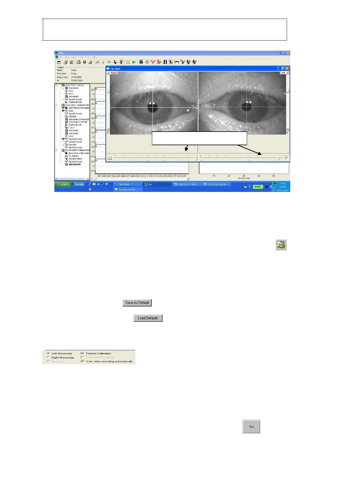 Test des Stimuli Oculomoteurs (uniquement avec le VO425)