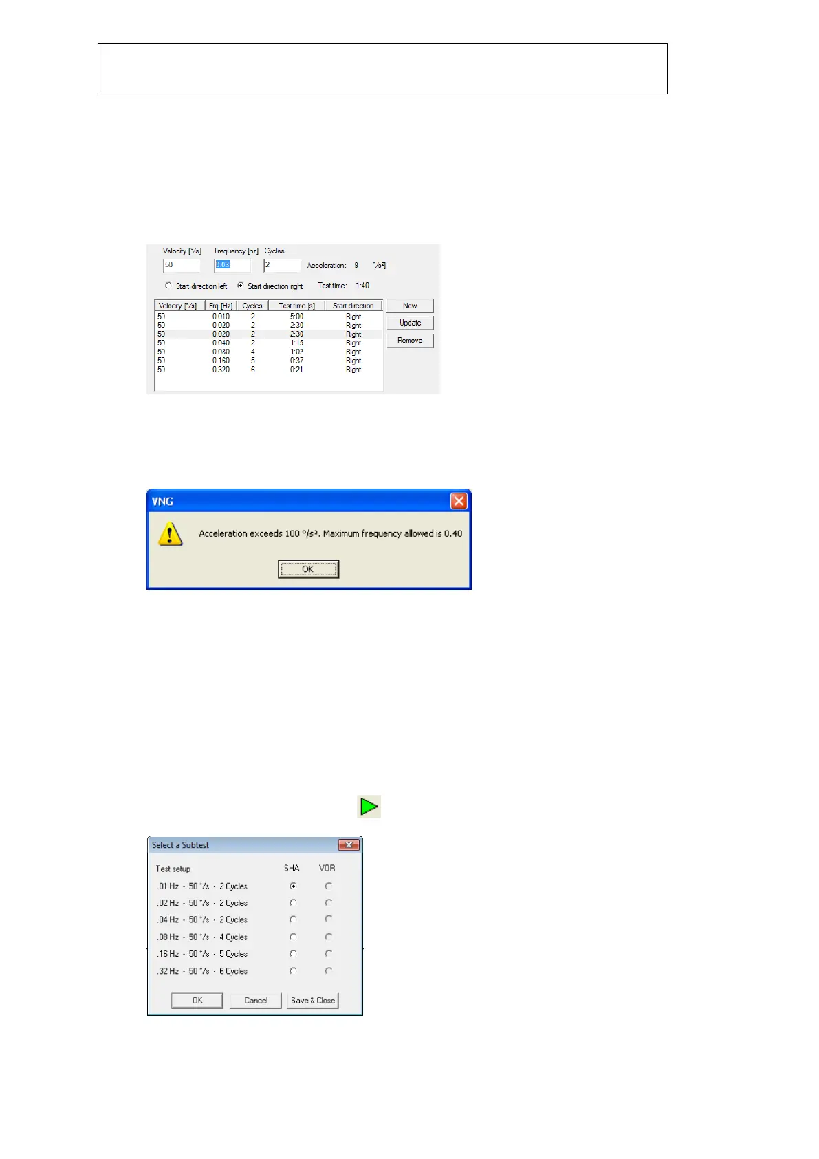 fréquences et saisissez la vitesse, la fréquence et les cycles souhaités dans les champs