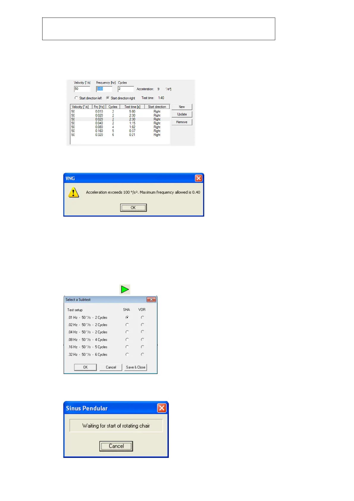 1. To start the test click in the test toolbar. The following dialog box will appear.