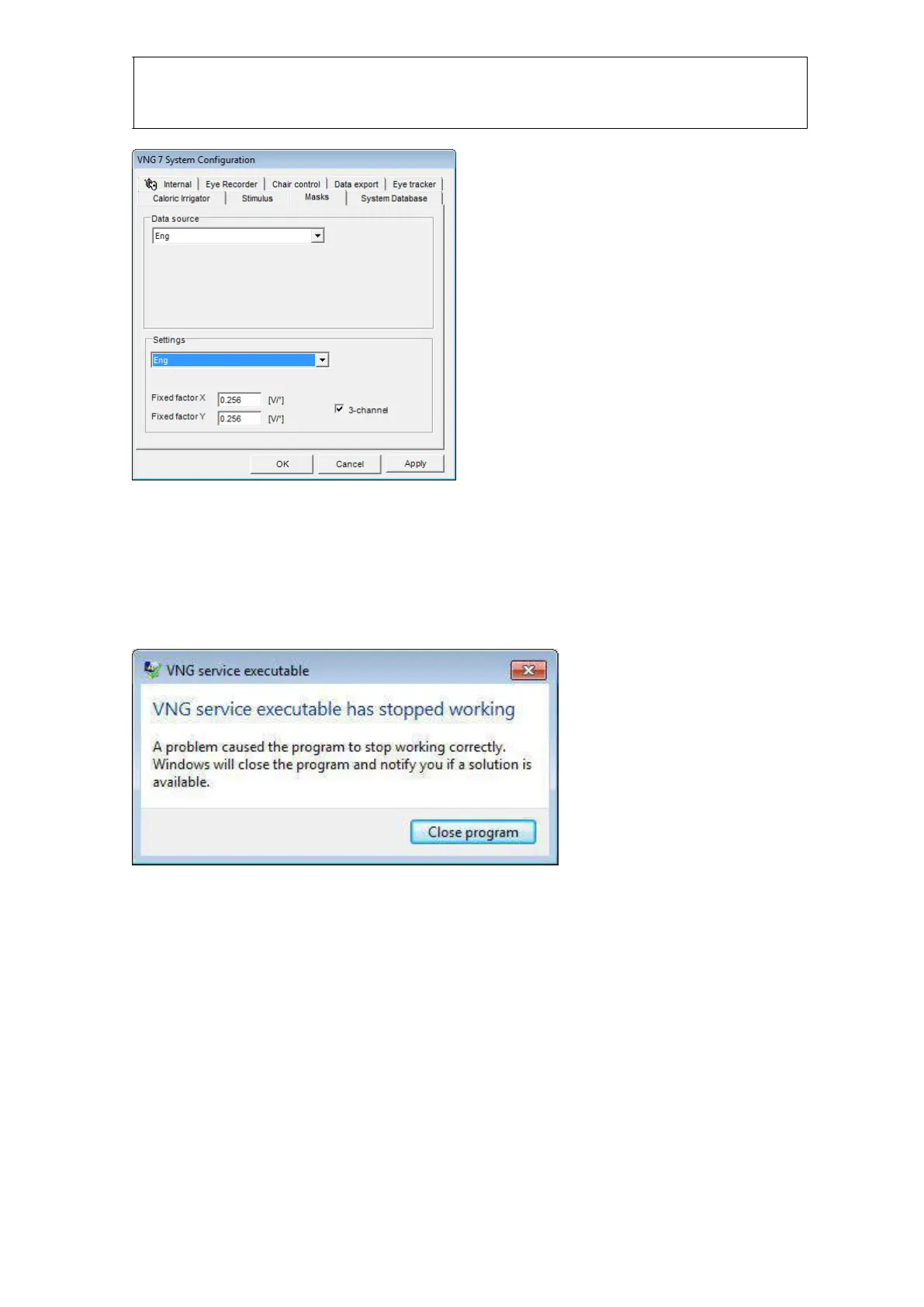 Εάν ο προενισχυτής του ENG αποσυνδεθεί ενόσω το λογισμικό εκτελείται ακόμη, θα λάβετε το