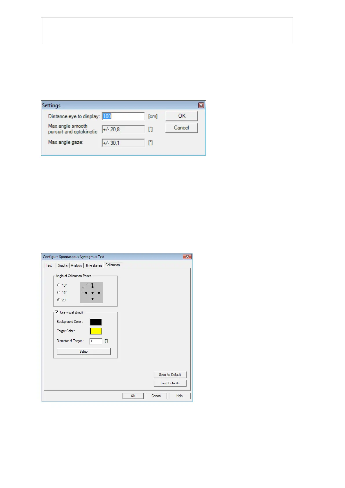 Υπάρχουν διαθέσιμες δύο διαφορετικές γωνίες. Η πρώτη είναι για τη σακκαδική δοκιμή, τη δοκιμή