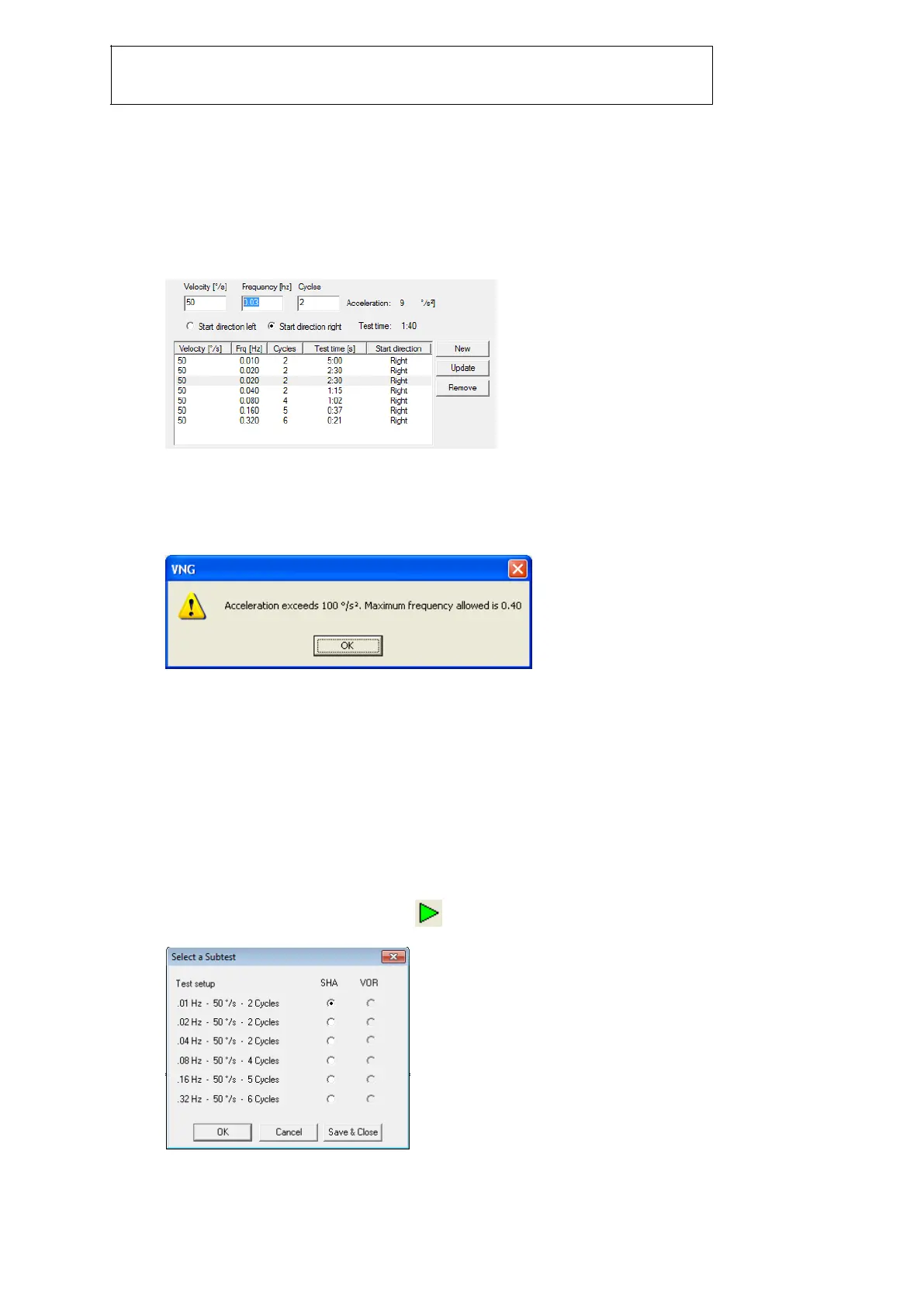 Frequenz ausgewählt werden. Einem Test können maximal zehn Stimuli hinzugefügt werden.
