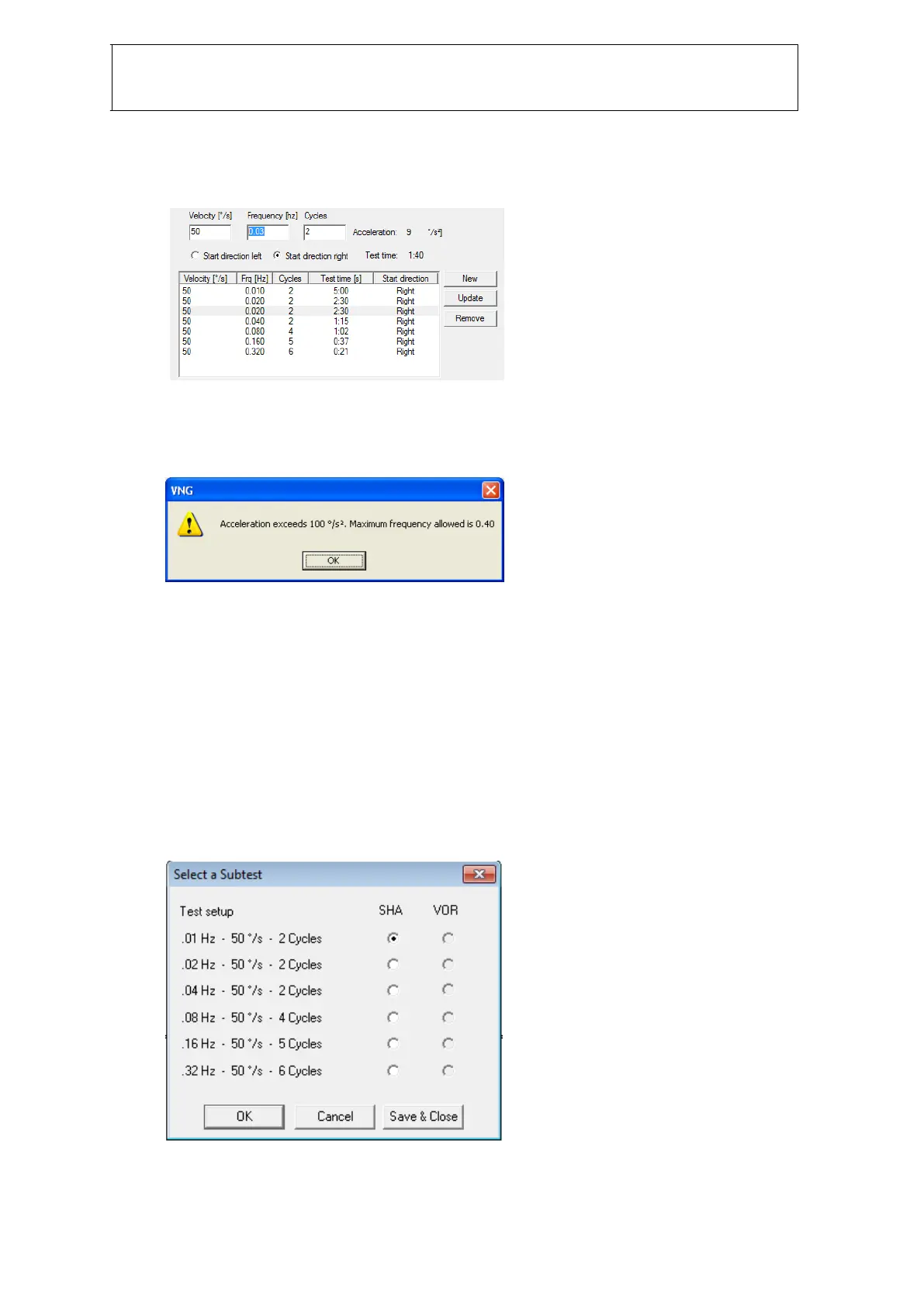 la frequenza desiderata viene selezionata, il software calcola l’accelerazione risultante. Se