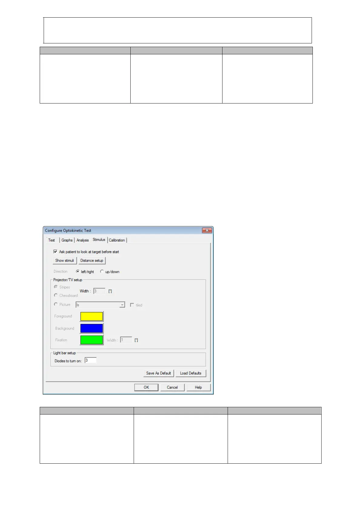 La finestra di dialogo per l'impostazione degli stimoli è identica a quella del test Gaze. Non è possibile