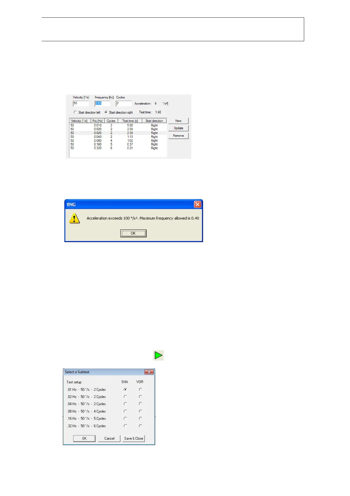do novo estímulo, selecione-o no campo das frequências e introduza a velocidade, frequência