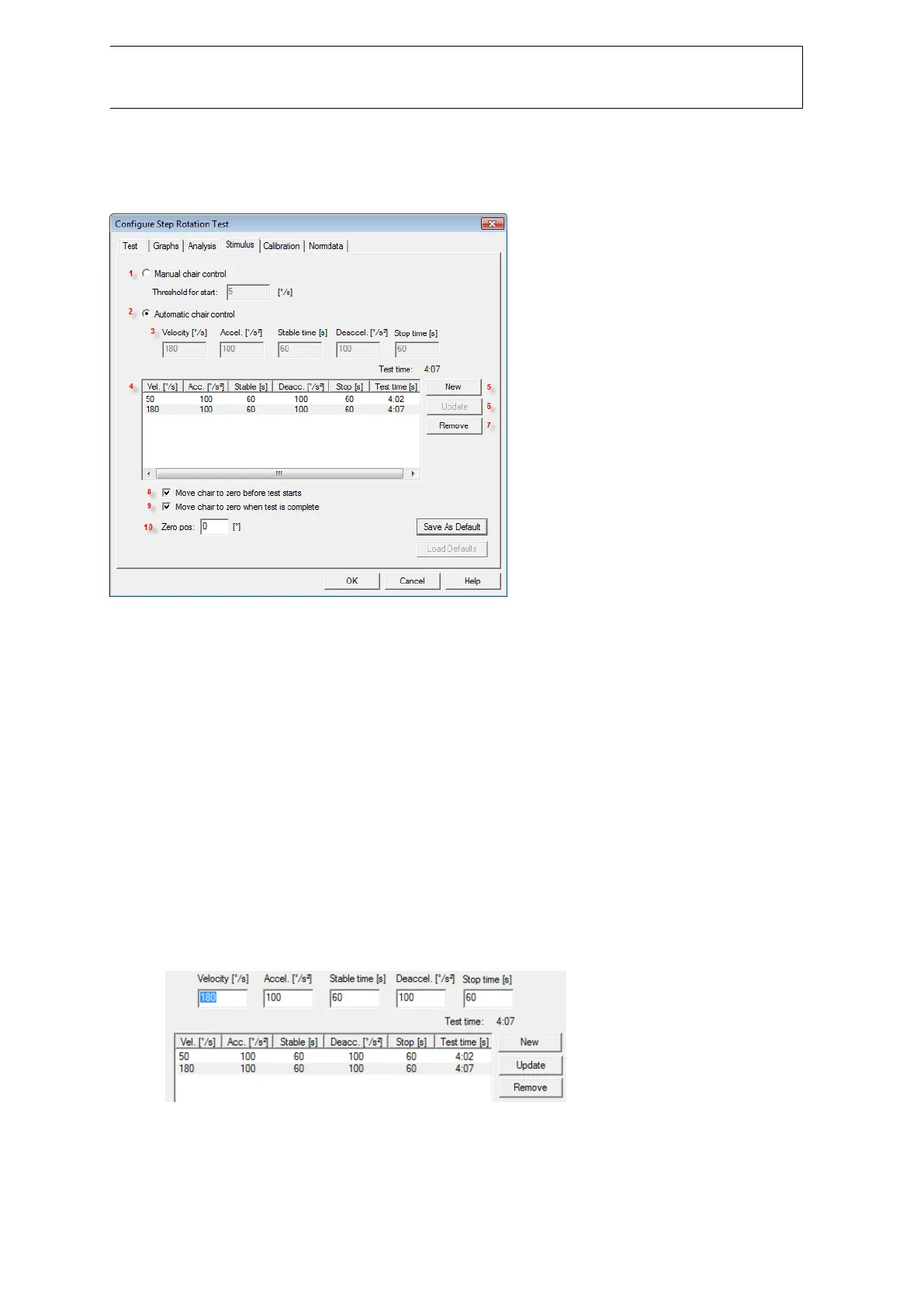 De forma a definir o teste de Rotação por Passos, abra o separador “Stimulus” na caixa de diálogo de