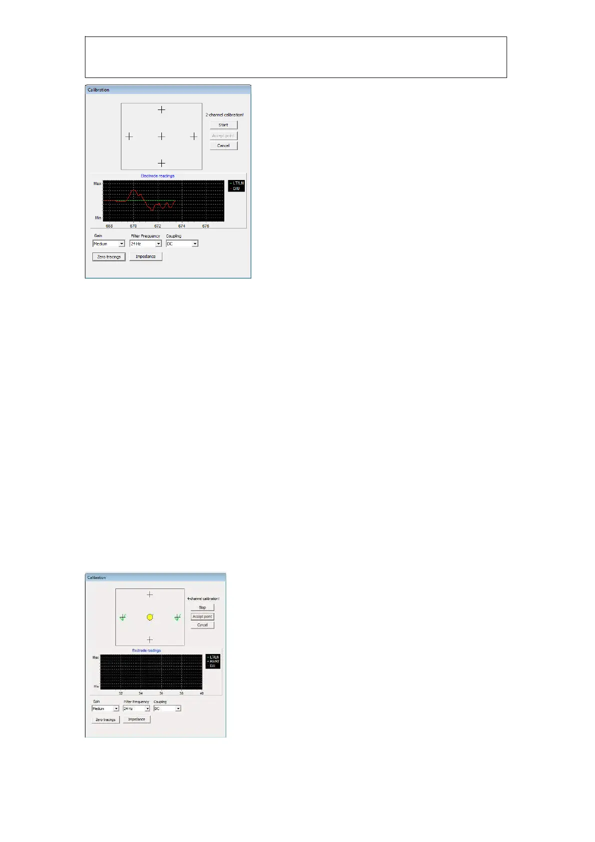 Before starting a calibration you can adjust the gain if the responses from the electrodes are too