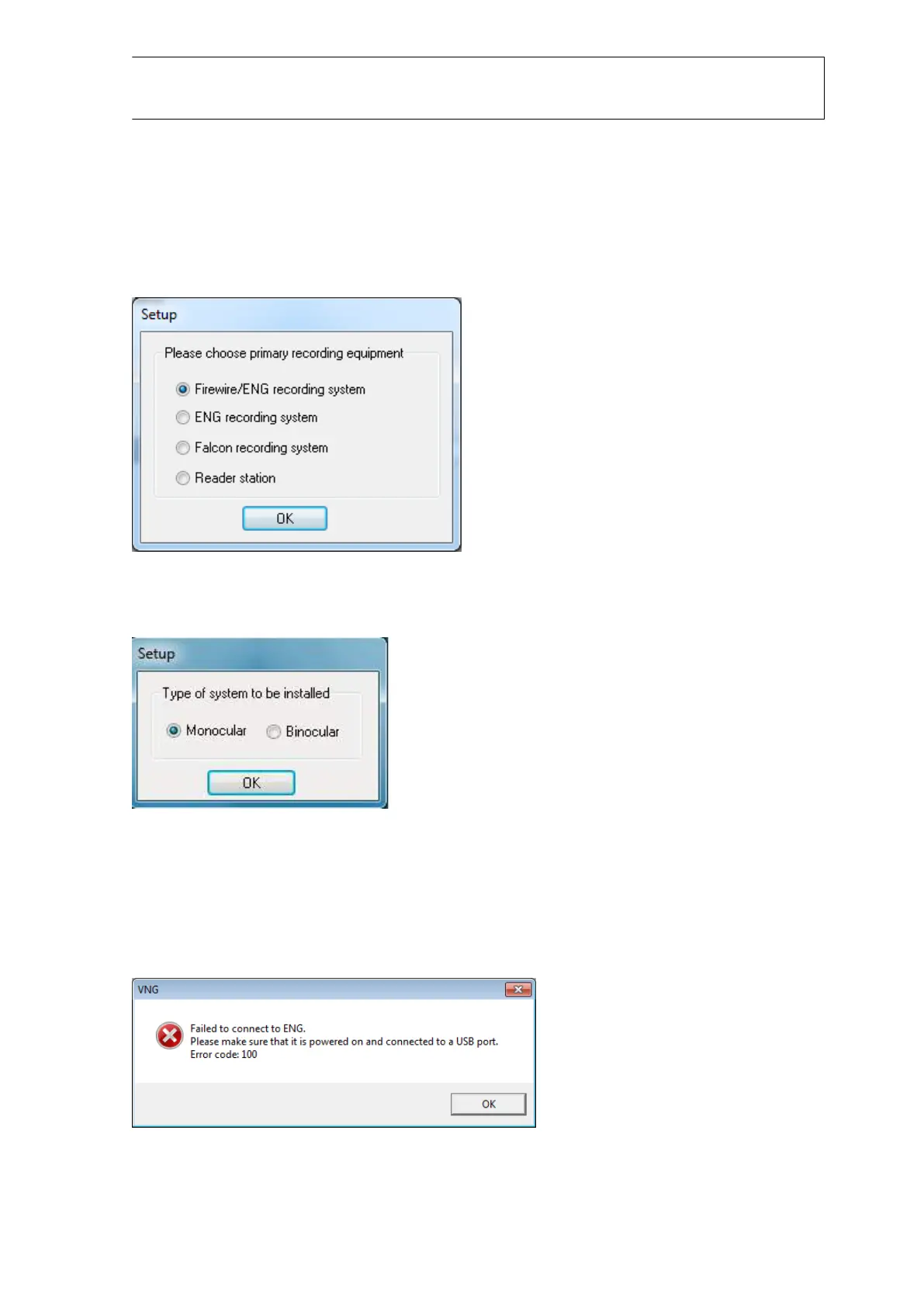 Clique em OK e depois selecione Monocular ou Binocular, dependendo da sua configuração.