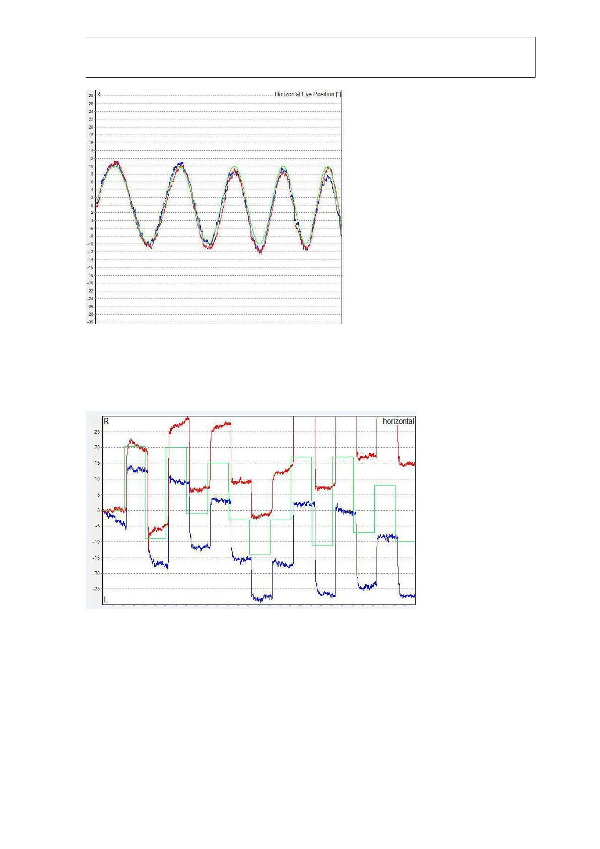 Abaixo pode ver um teste Saccade com desvio de sinal significativo (o sinal começou na posição