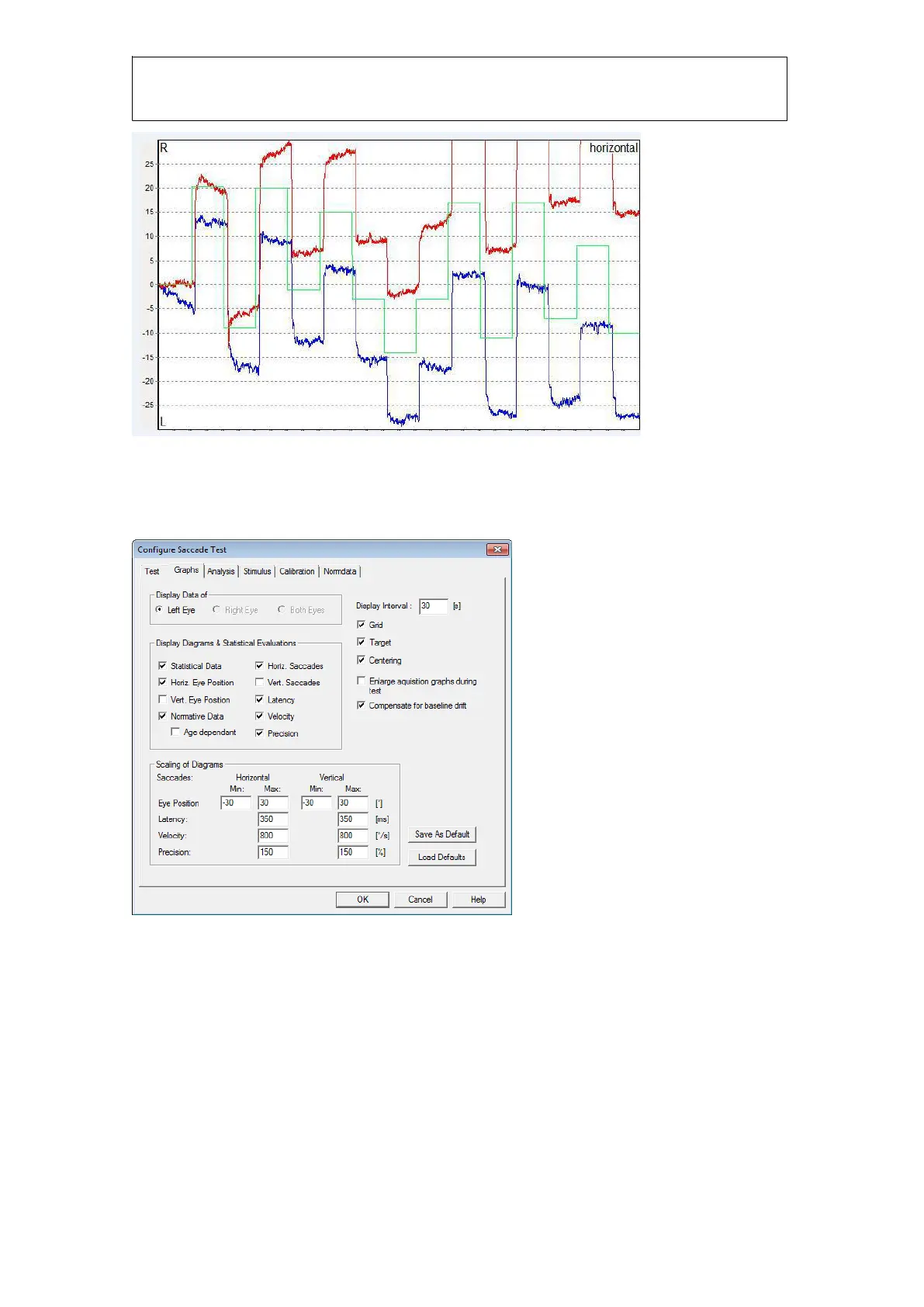 To re-center the tracings double-click in the saccade test window to go to Configure Saccade Test-