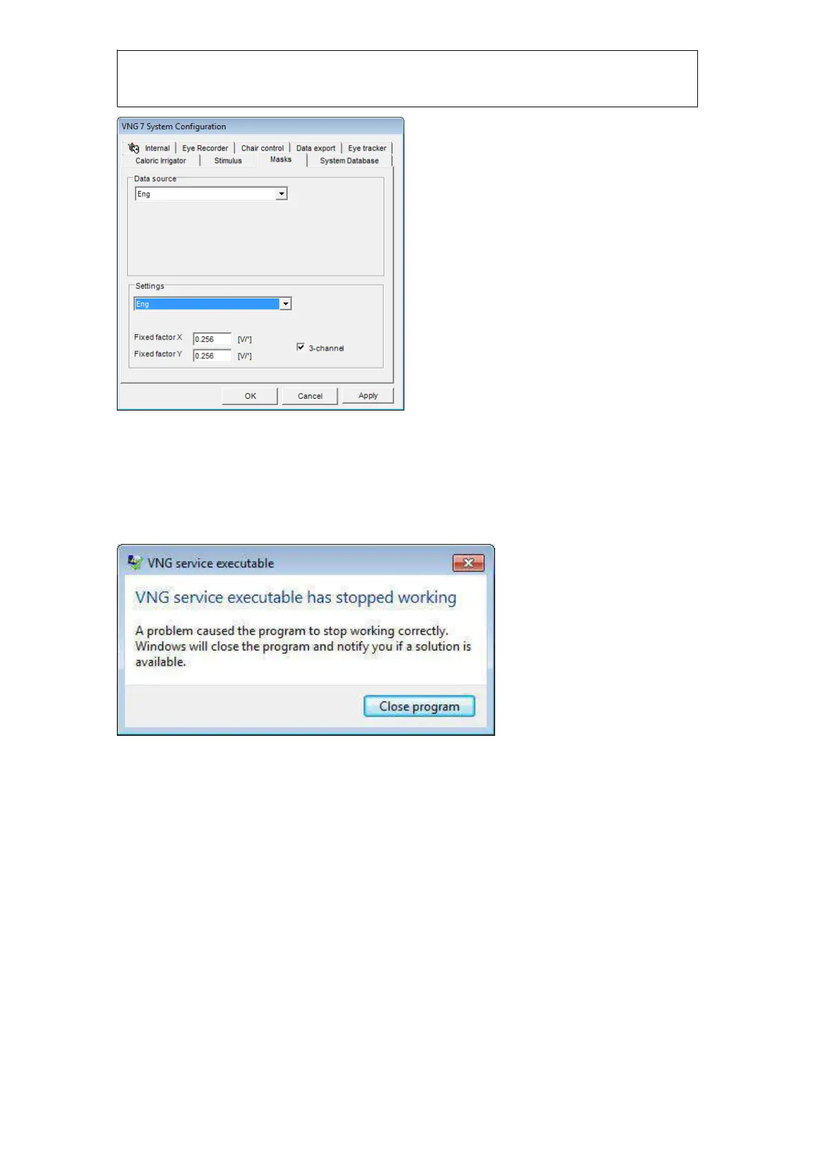 If the ENG preamplifier becomes unplugged while the software is still running you will receive the