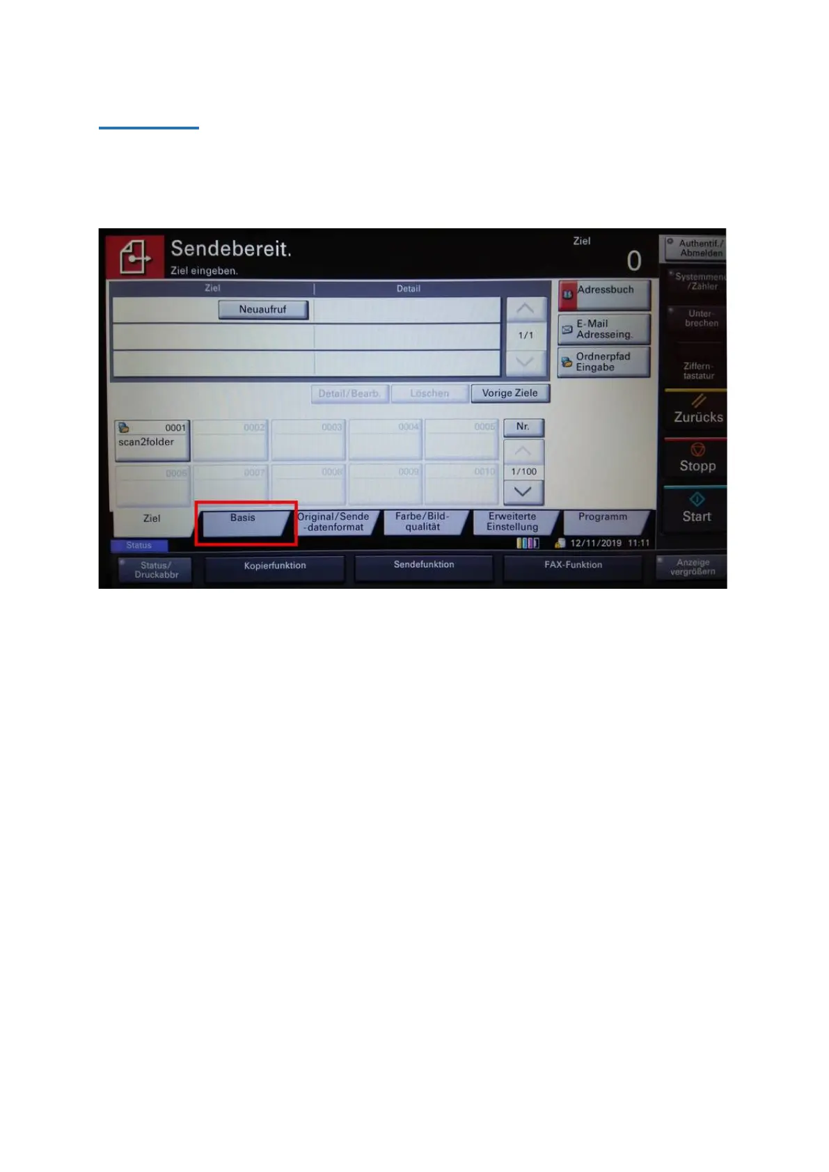 Alle weiteren Scanoptionen finden Sie unter dem Reiter "Basis" wie z.B. Farbauswahl, Auflösung,