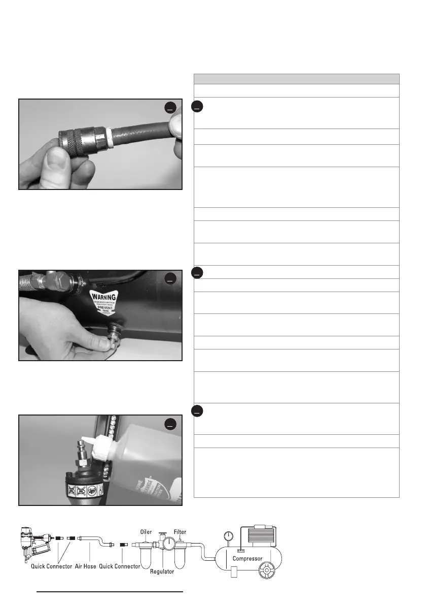 The lubricator supplies an oil mist to the nailer. El lubricador provee y rocía aceite ala clavadora Un lubrificateur fournit un brouillard d’huile à la