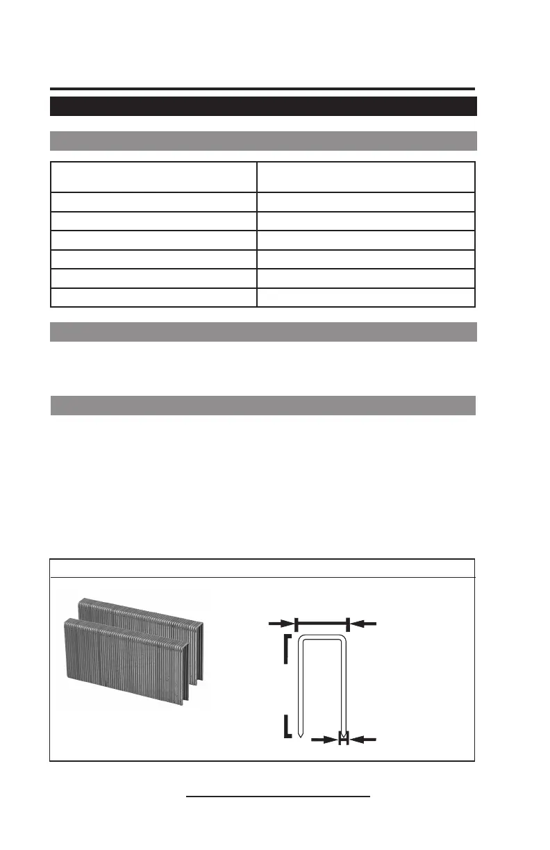 Only the staple sizes shown in the table below can be driven with this stapler.