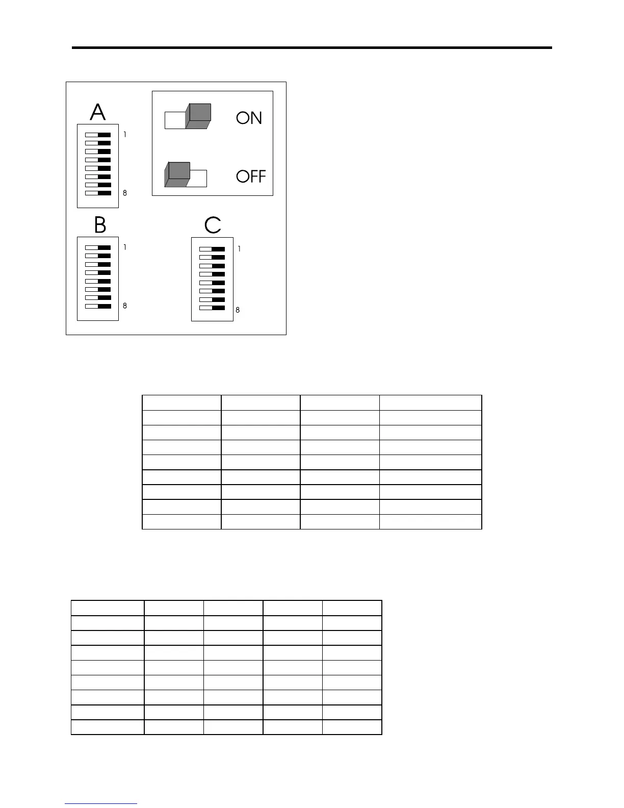 The above switches should be set on switch packs A, B, and C.