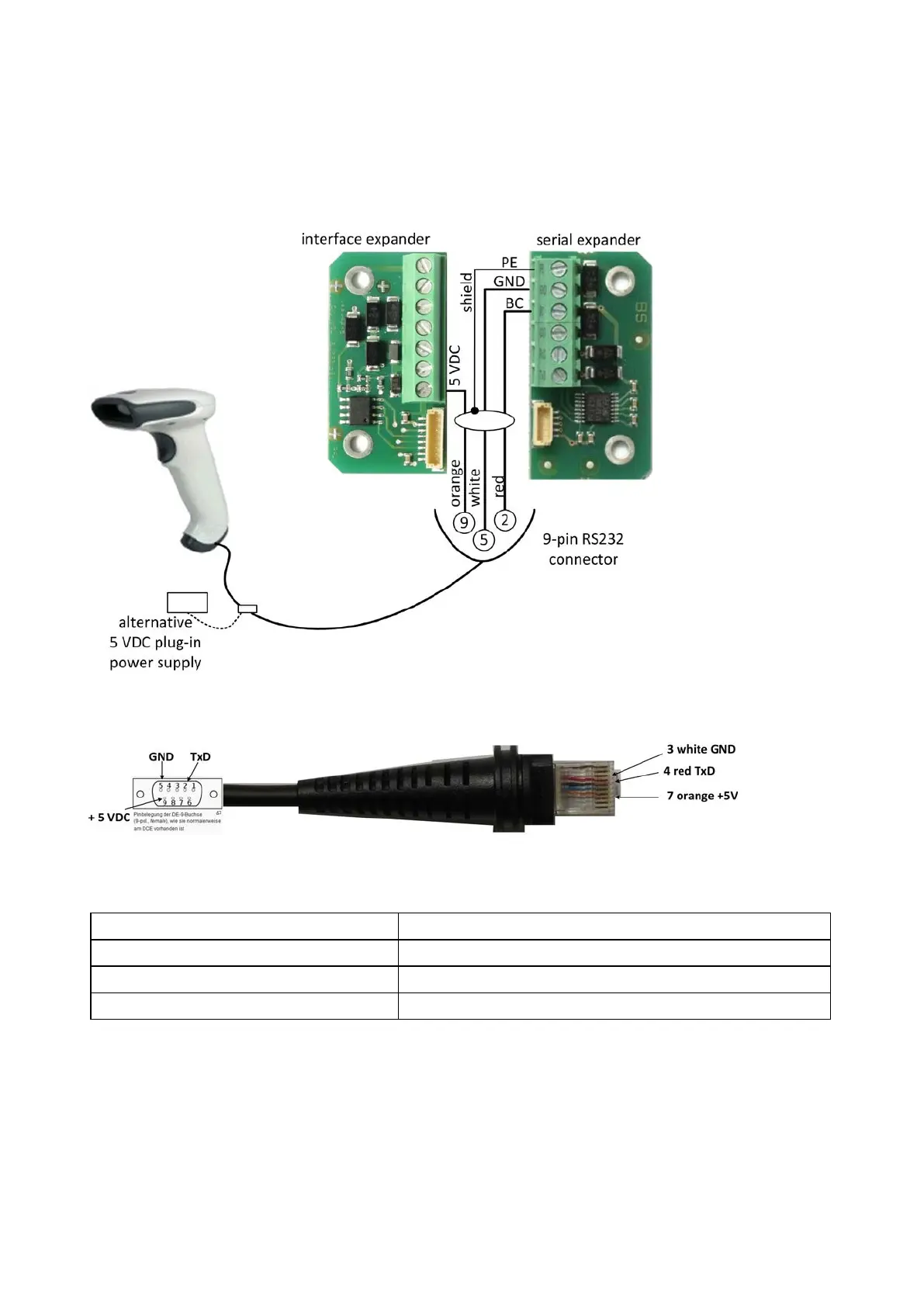 directly fed. If the voltage is to be supplied by an Interface Expander, then the barcode reader is connected
