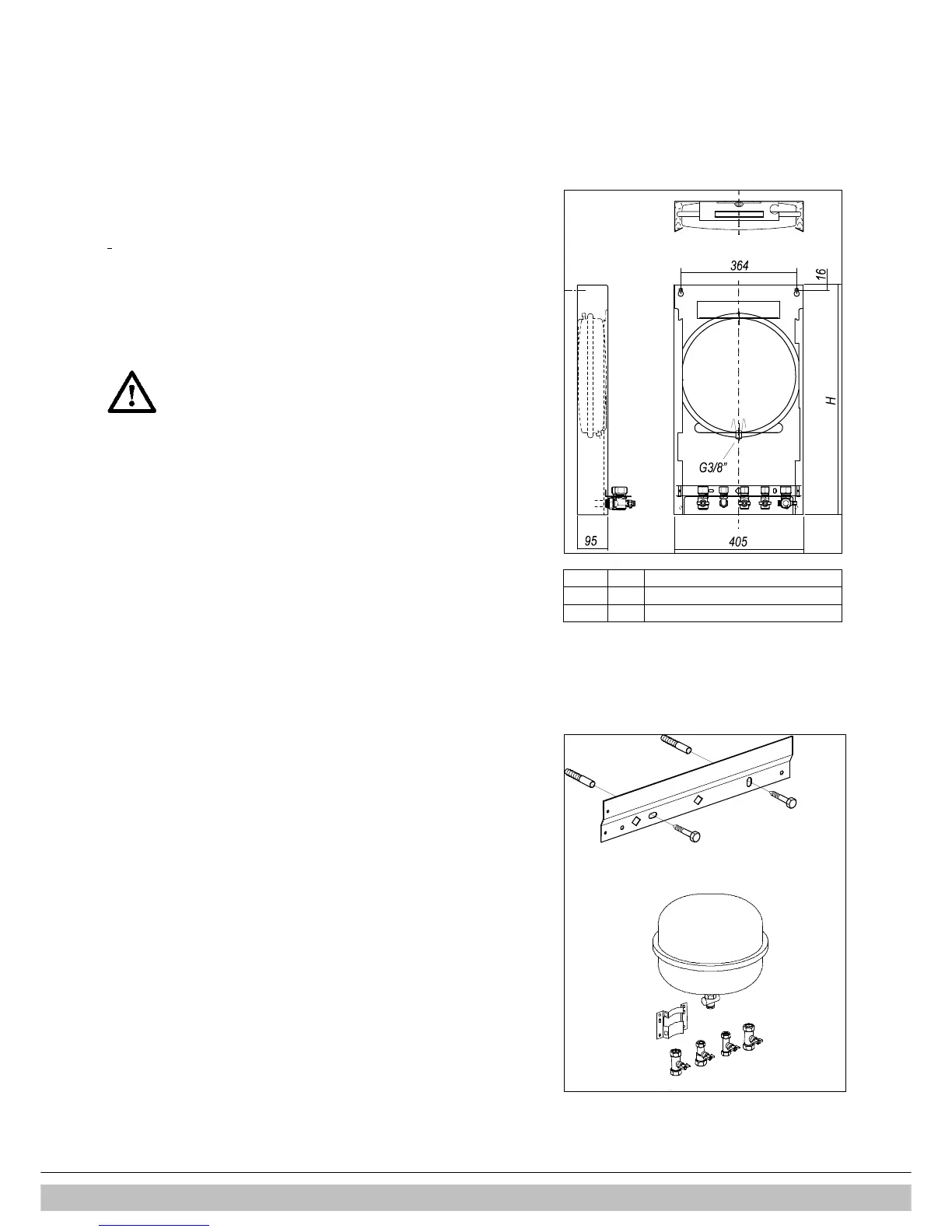The boiler can be mounted either on the fixing strip which is supplied in the box or to a
