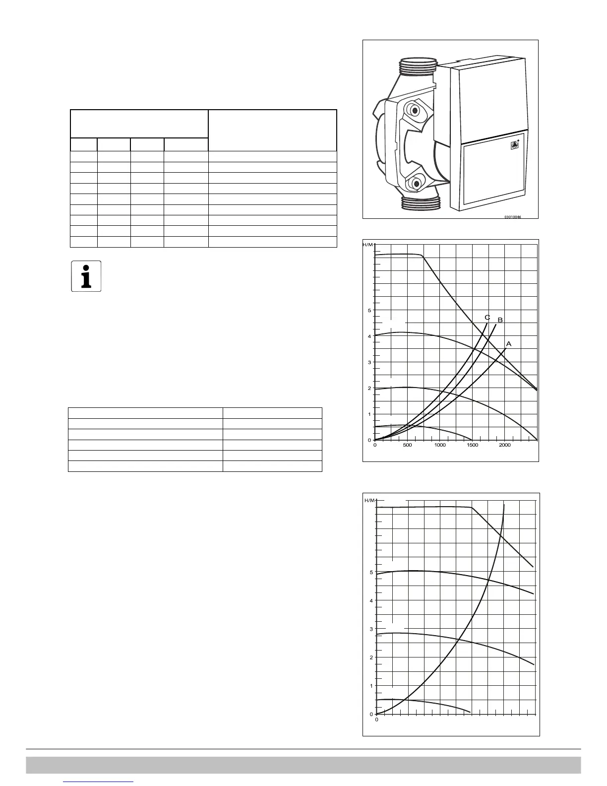 The minimum flow quantity (l/h) Power setting (kW)