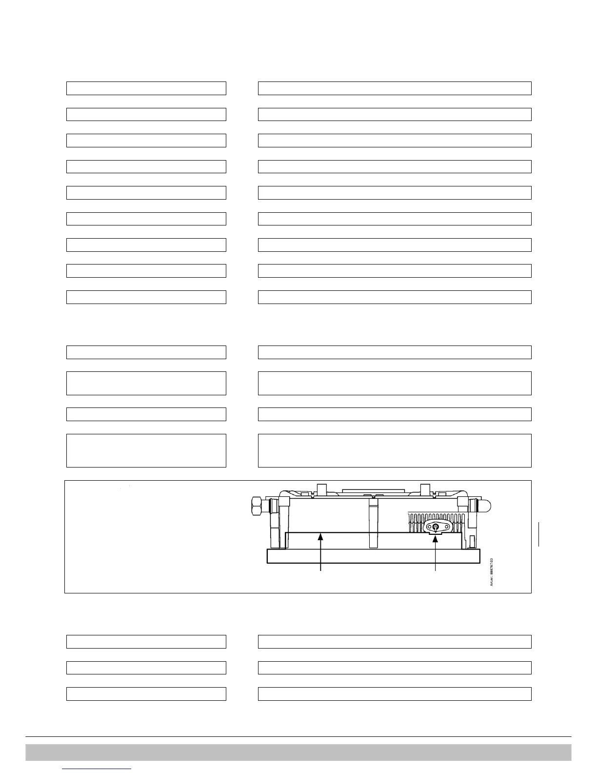 No spark. Ignition unit on gas valve faulty. Check the cabling. Check the spark plug cap. Replace the ignition unit.