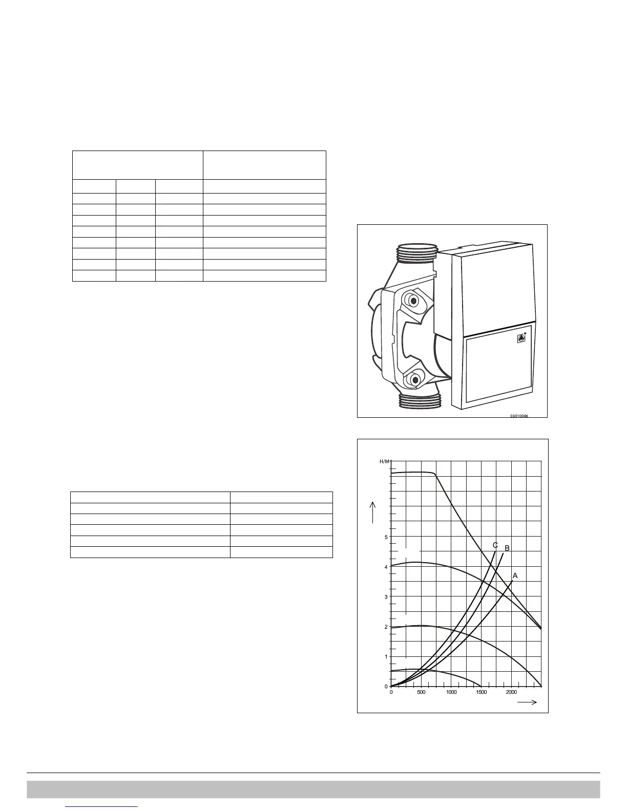The minimum flow quantity (l/h) Power setting (kW)