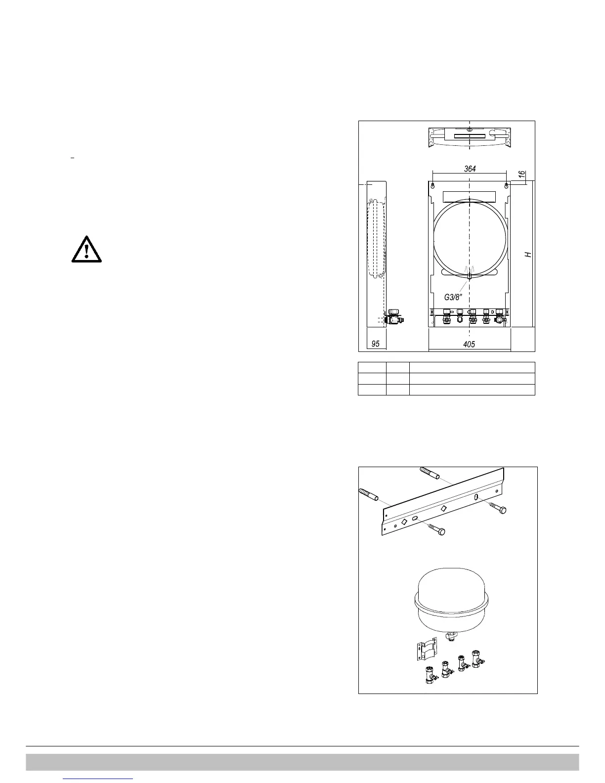 The boiler can be mounted either on the fixing strip which is supplied in the box or to a