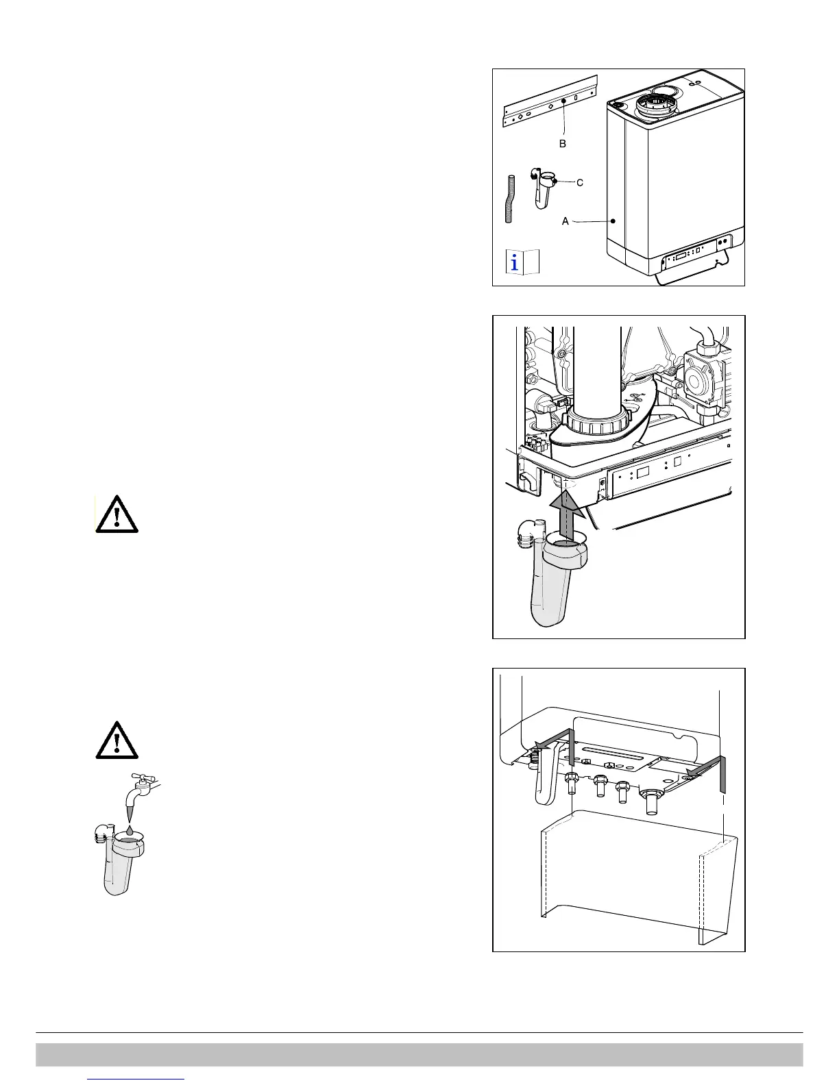 12. Fill the condensate trap with water and slide it as far as possible upwards on to