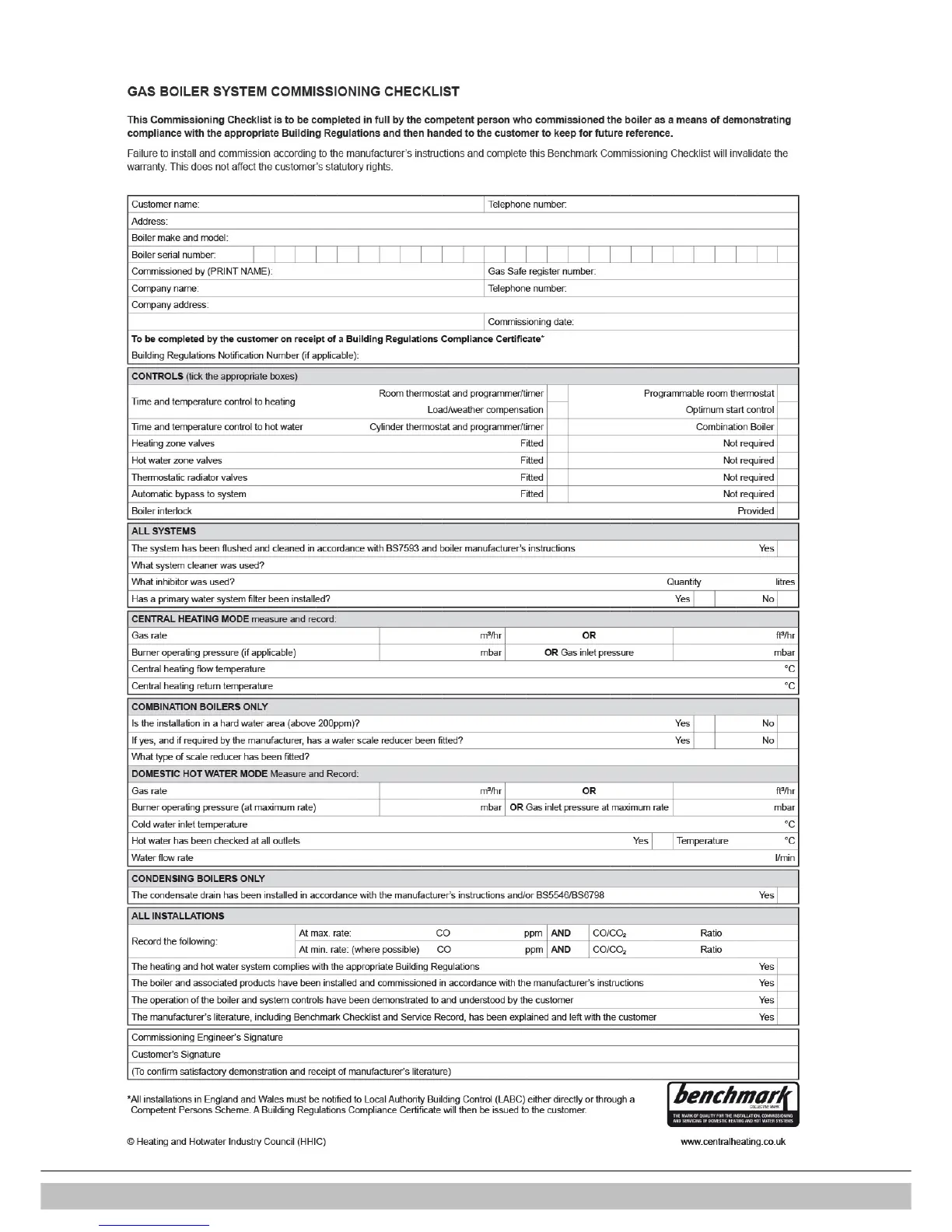 17 GAS BOILER SYSTEM COMMISSIONING CHECKLIST