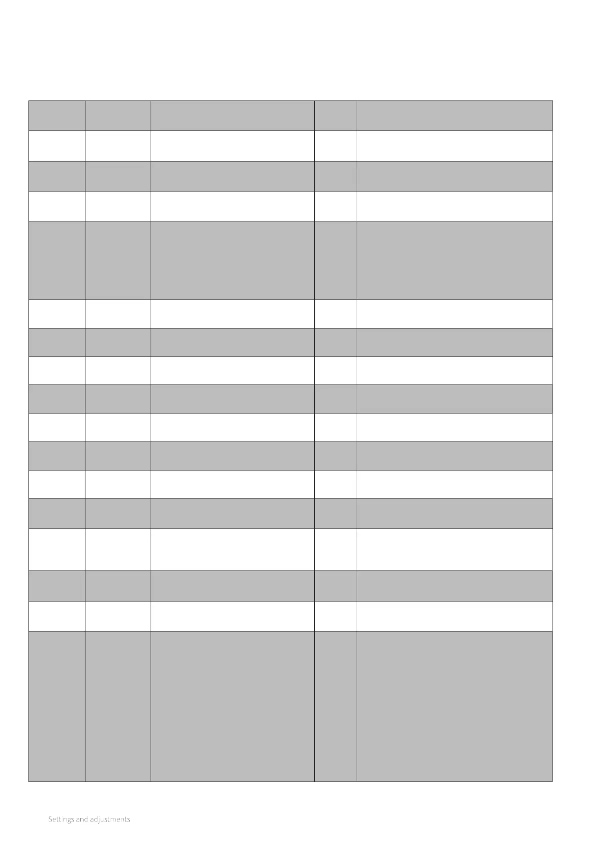 The parameters are set at the factory in accordance with the table below. These parameters can only be