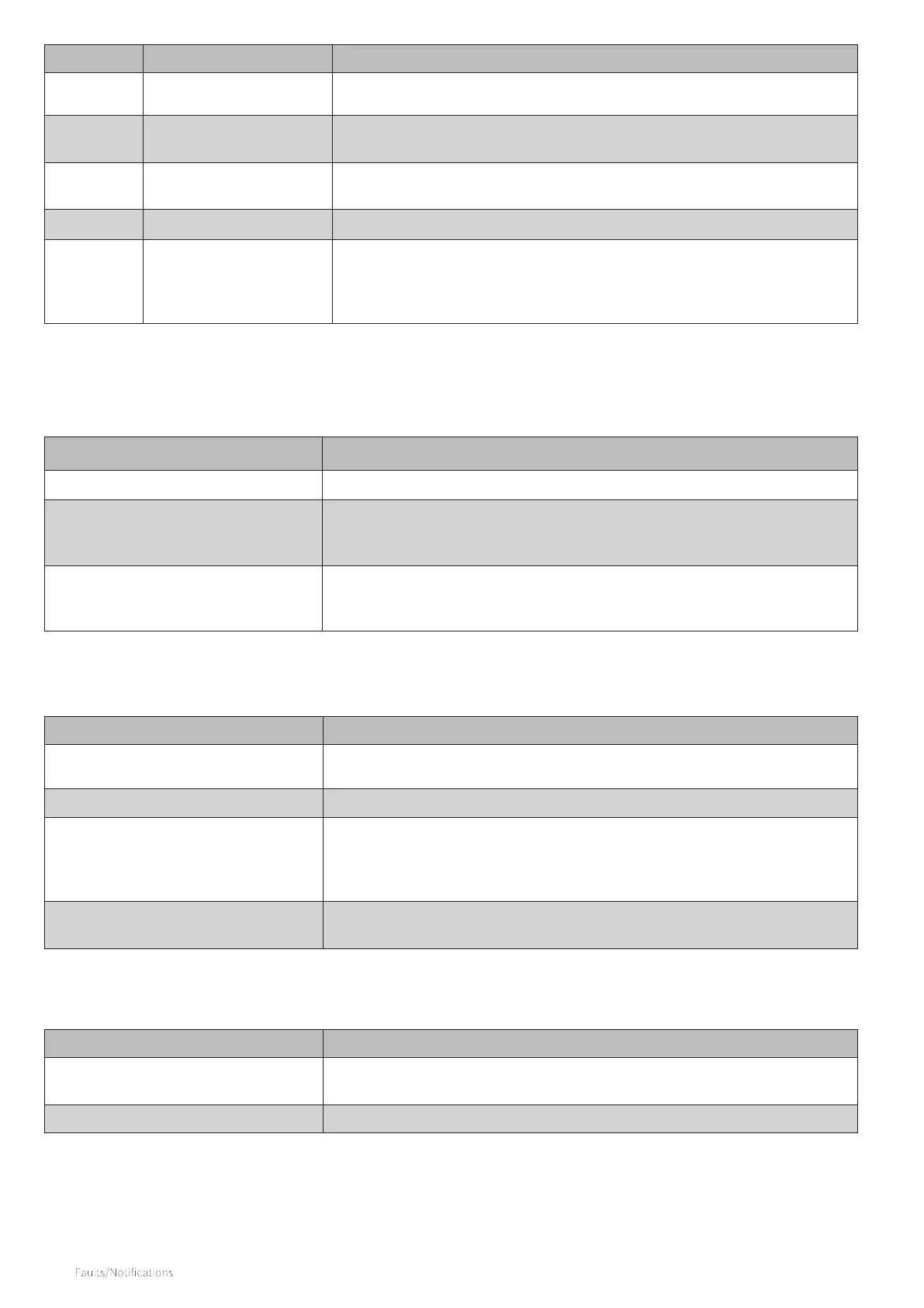 Notification Description Possible cause/solution