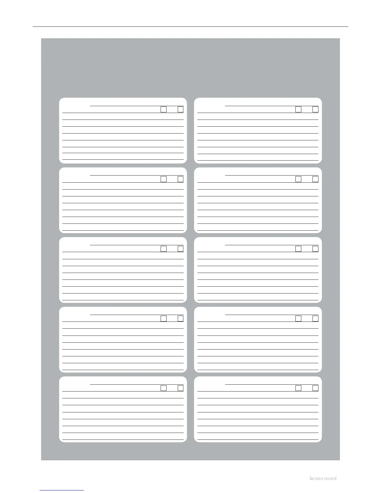 Before completing the appropriate Service Record below, please ensure you have carried out the service as described in the manufacturer’s
