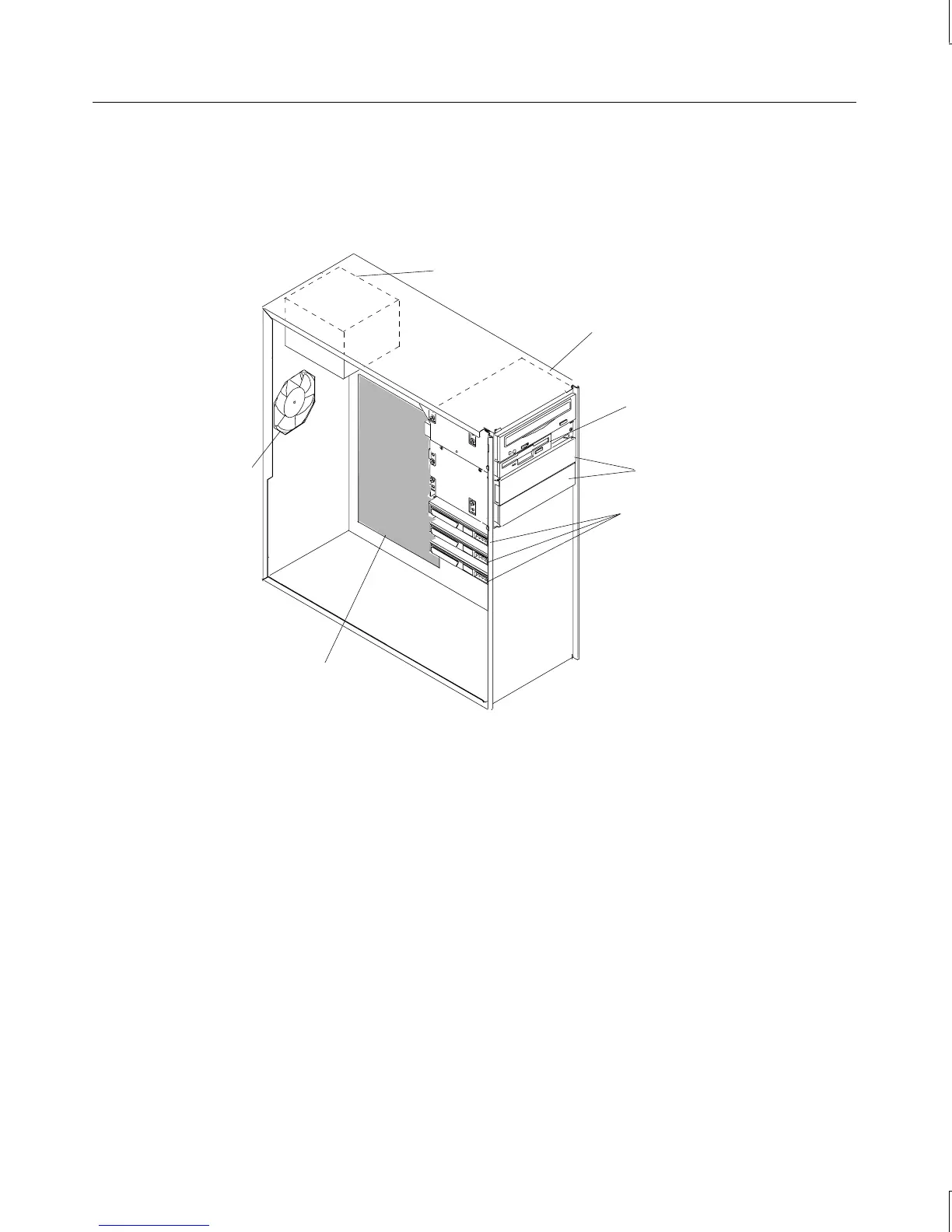 The following figure shows the major parts and assemblies inside the server.