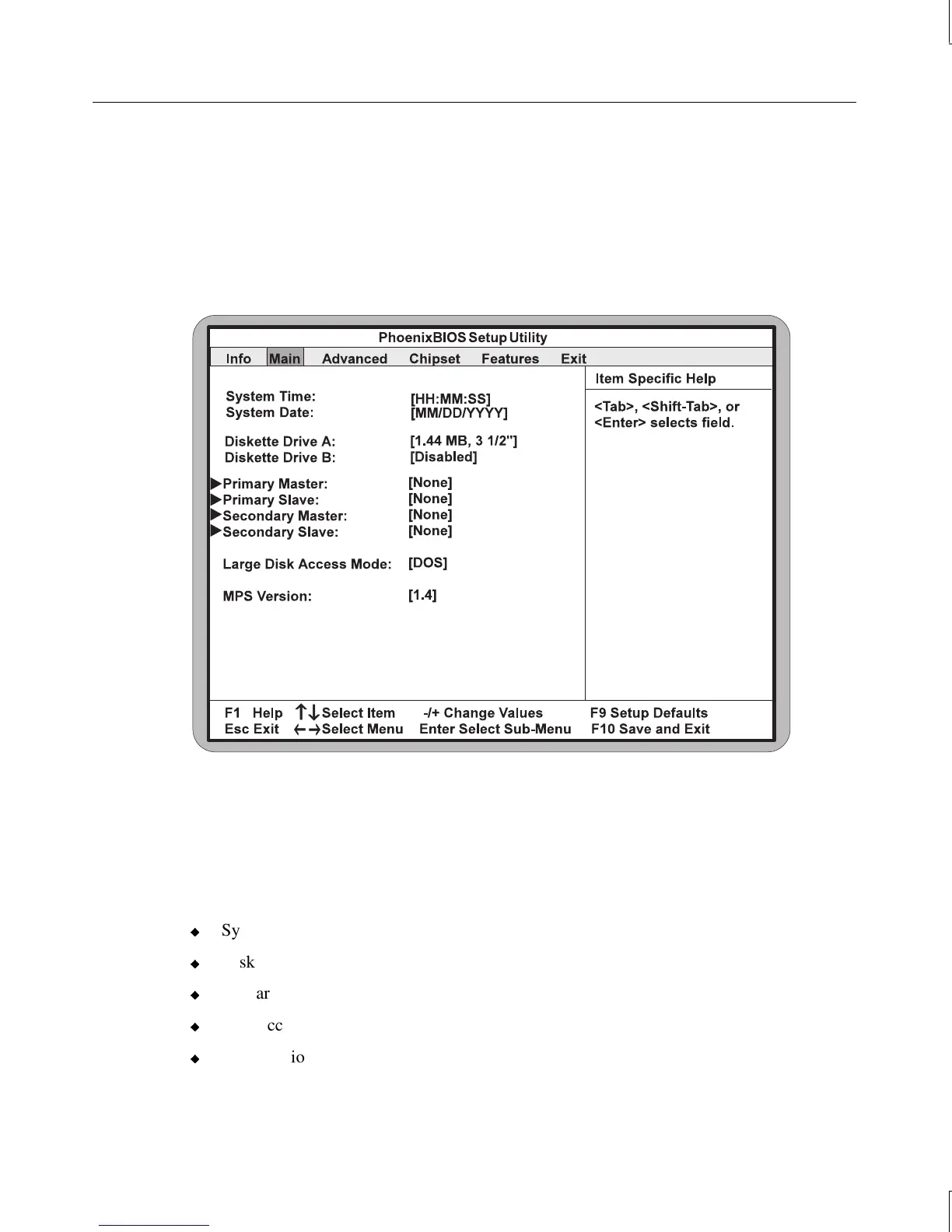 To access the Main screen, use the arrow keys to highlight Main on the BIOS Setup main