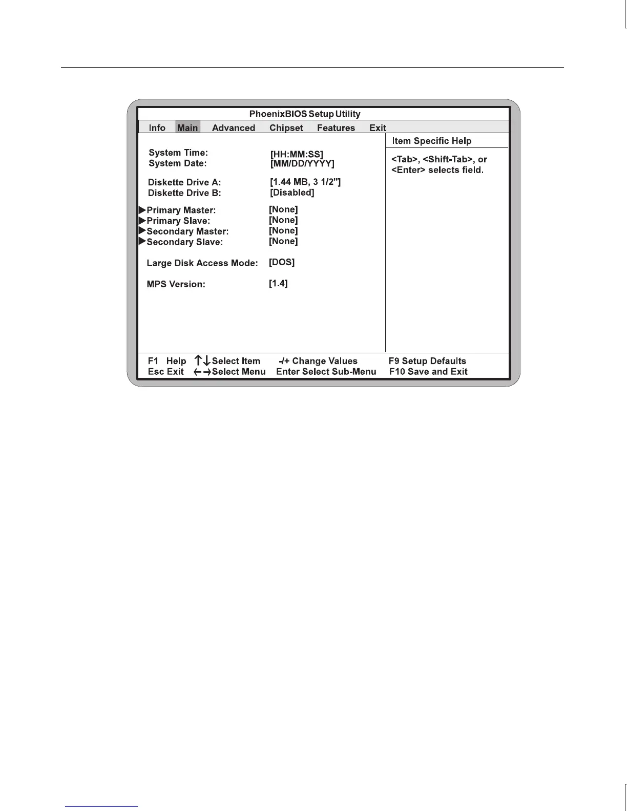 To set the system time, use TAB to move the prompt and select a field (hours, minutes, or