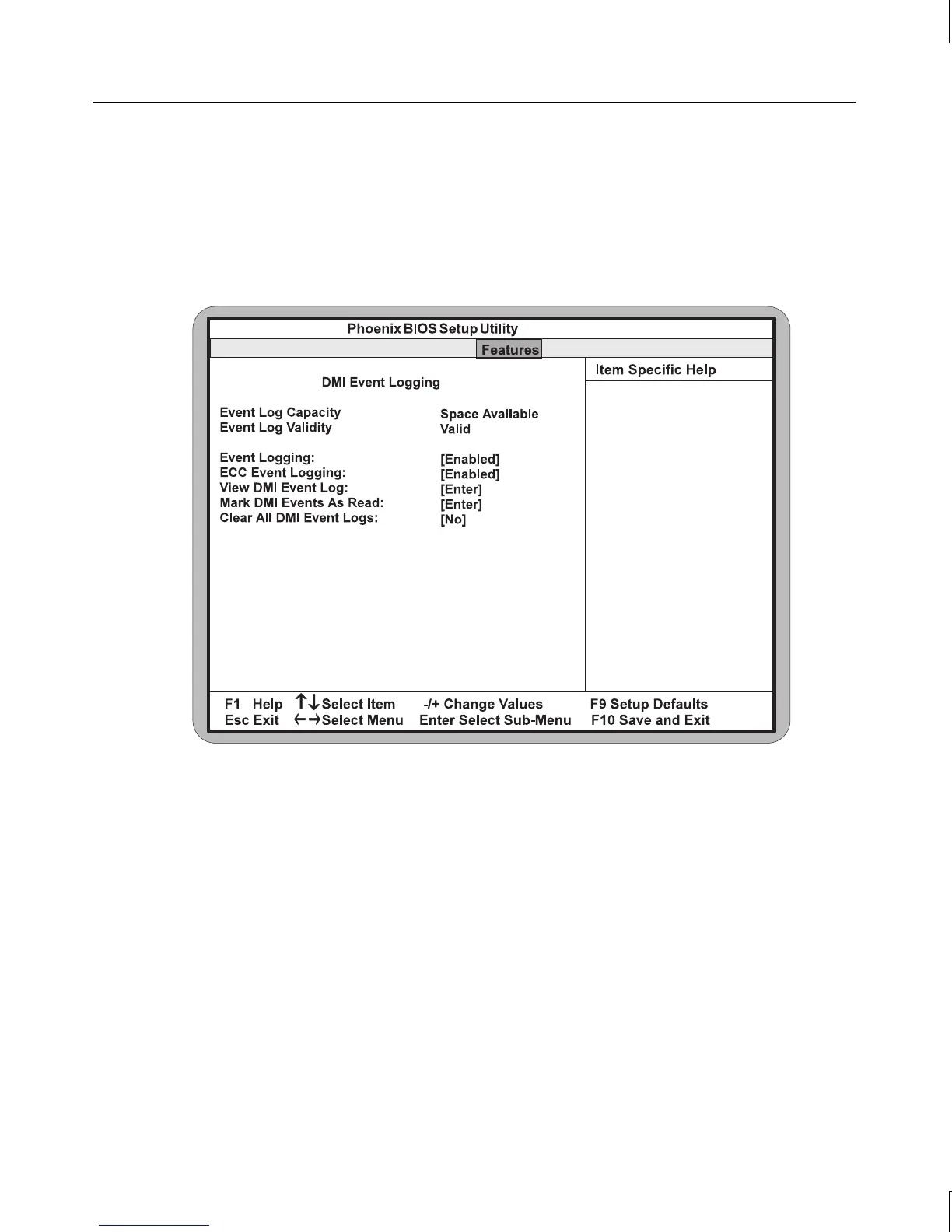 DMI Event logs. To enable the DMI Event Logging feature, highlight it and press
