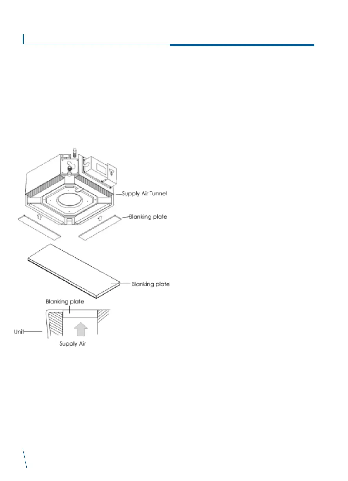 2) Apply blanking plate on the supply air tunnel to cover the