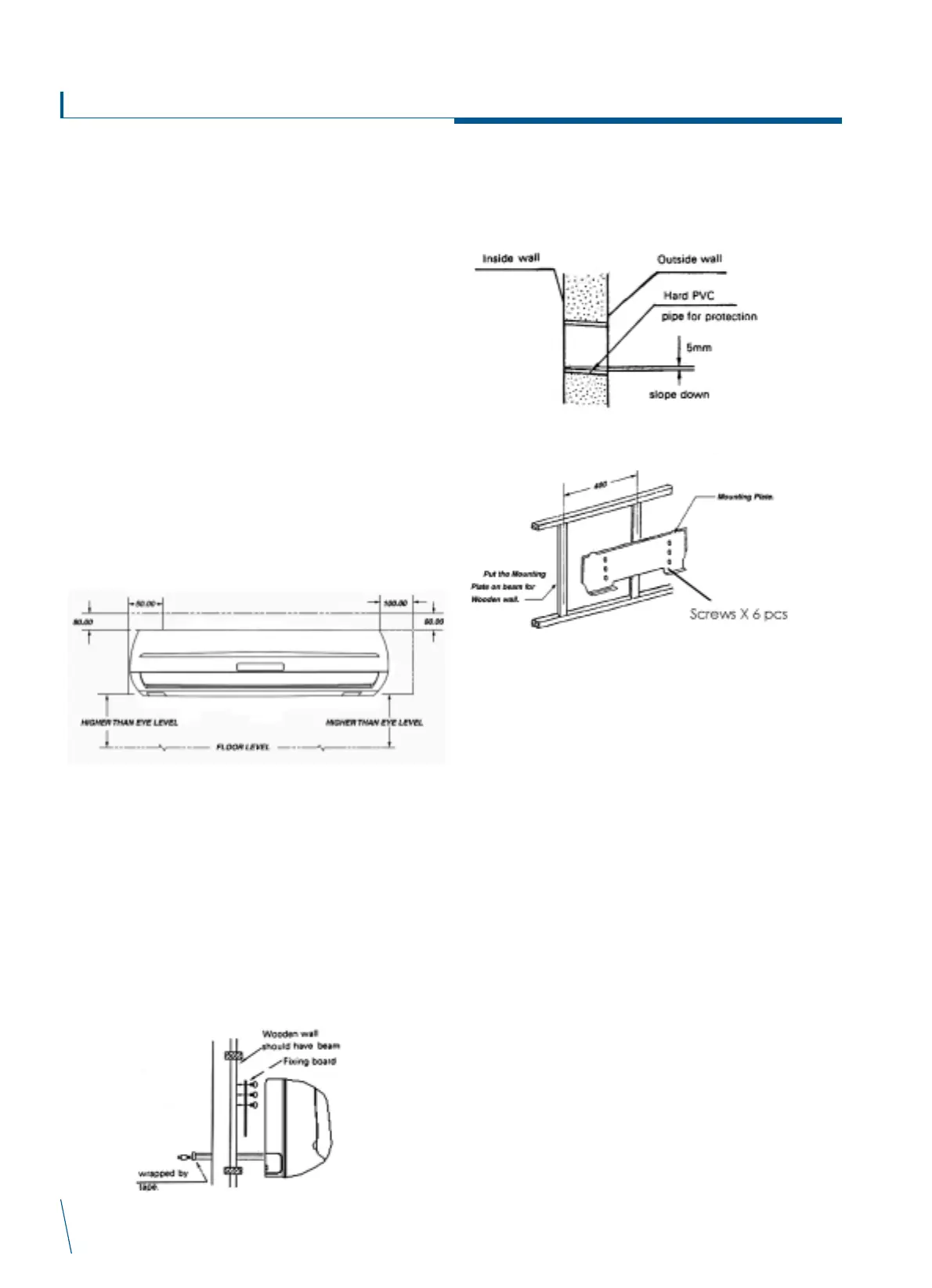 2. The wall where the unit is to be mounted should be stiff