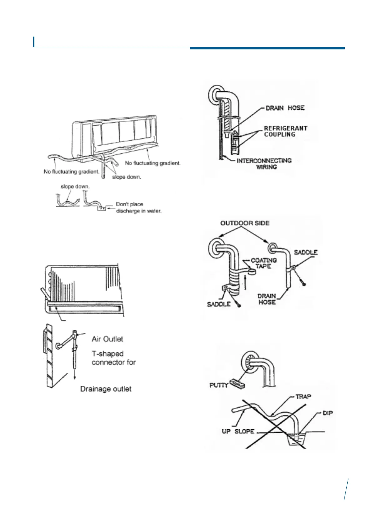 5. If the horizontal drain pipe is too long an air outlet should be
