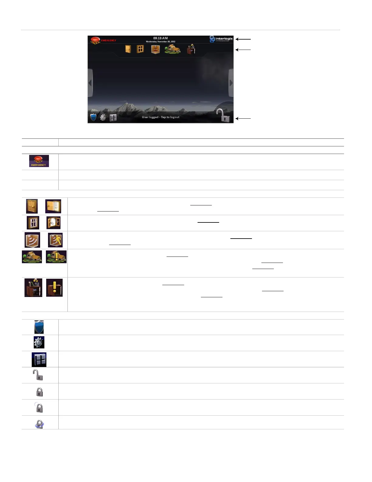 Door status - The icon depicted on the left indicates all monitored doors are closed. The icon depicted on the right indicates
