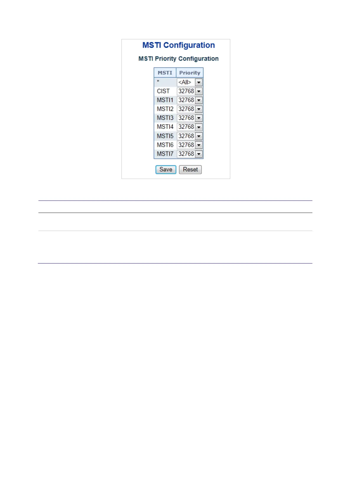 The MSTI Configuration page permits the user to inspect and change the current STP