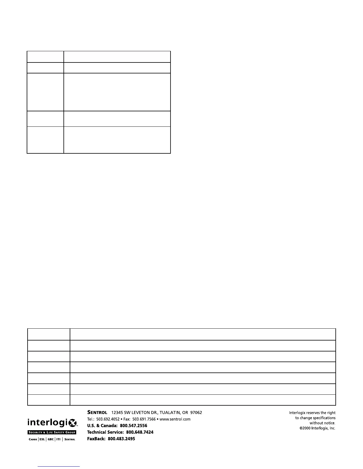 Tamper switch rating .................................... 12V, 50mA max.
