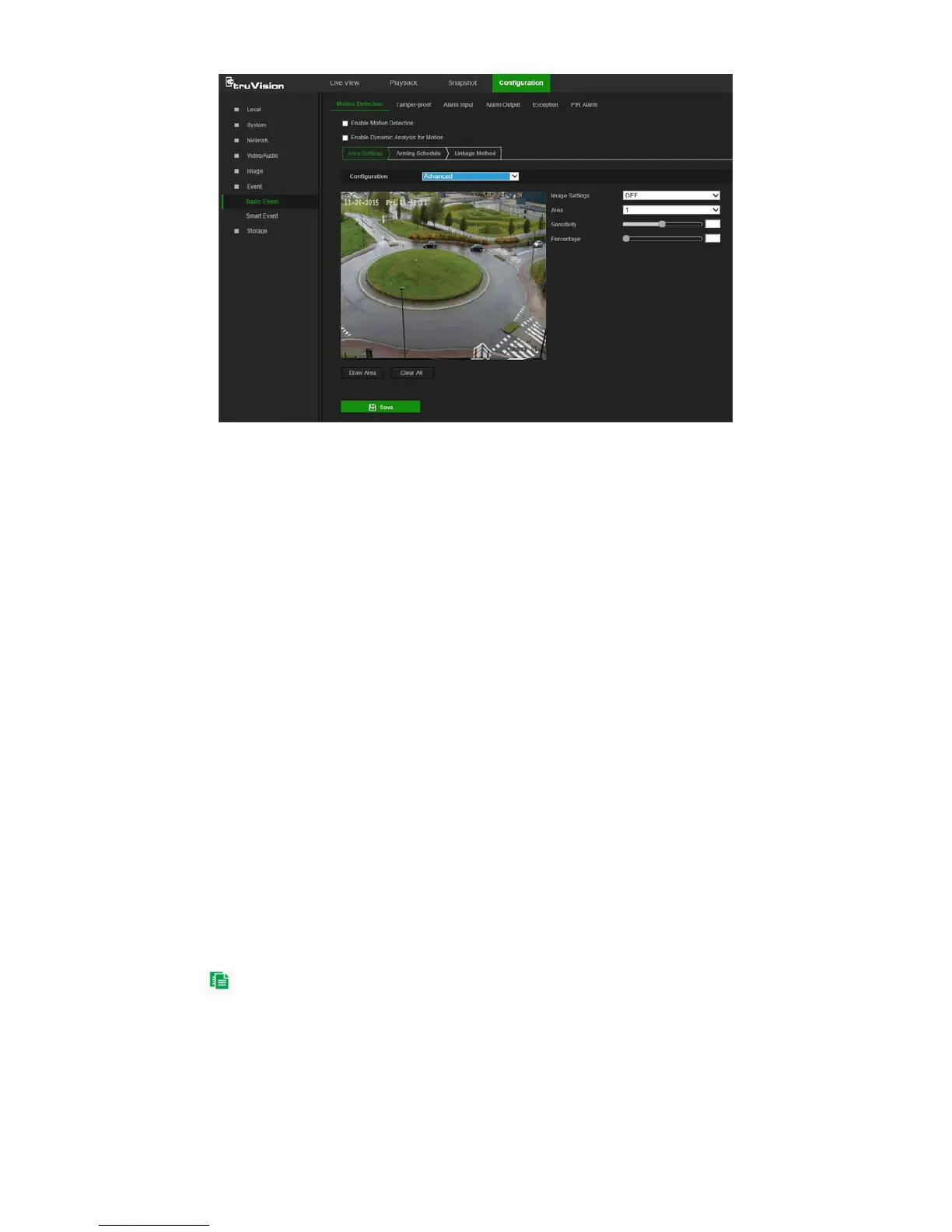 the mouse on the live video image to draw an area sensitive to motion detection.
