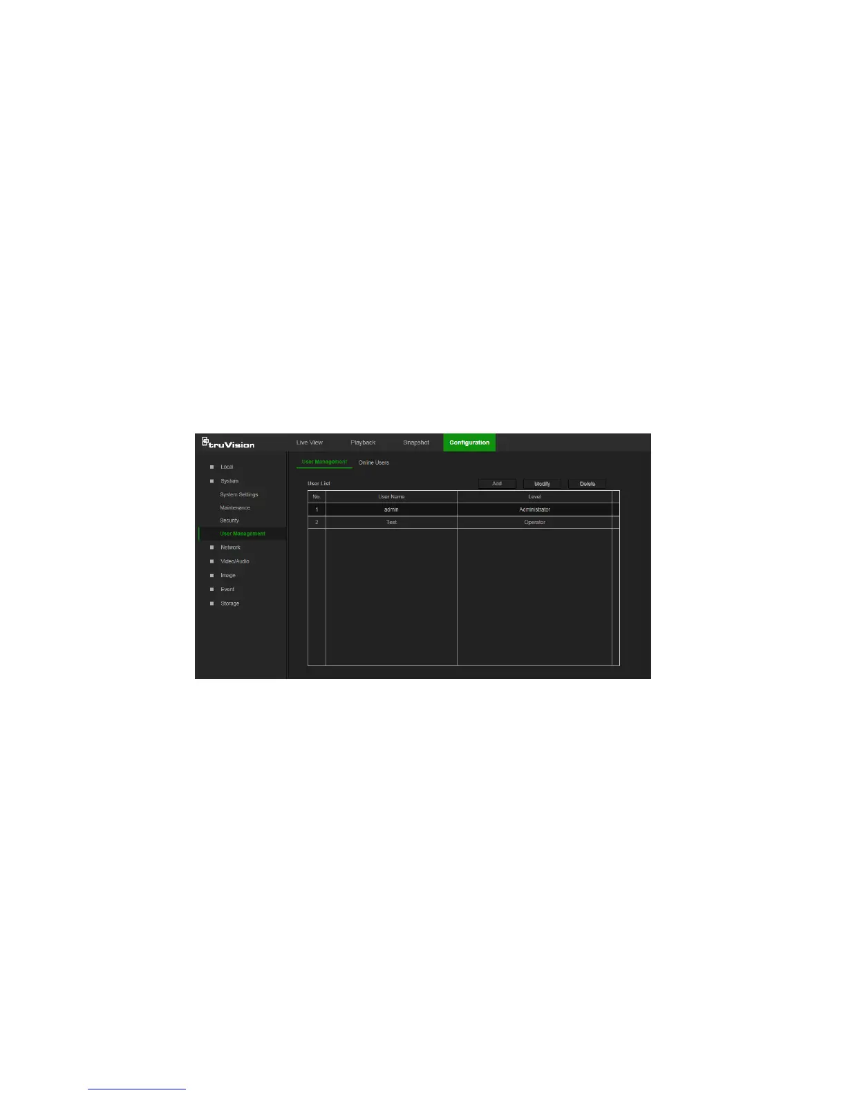 settings. Only the administrator can create and delete user accounts. Admin cannot