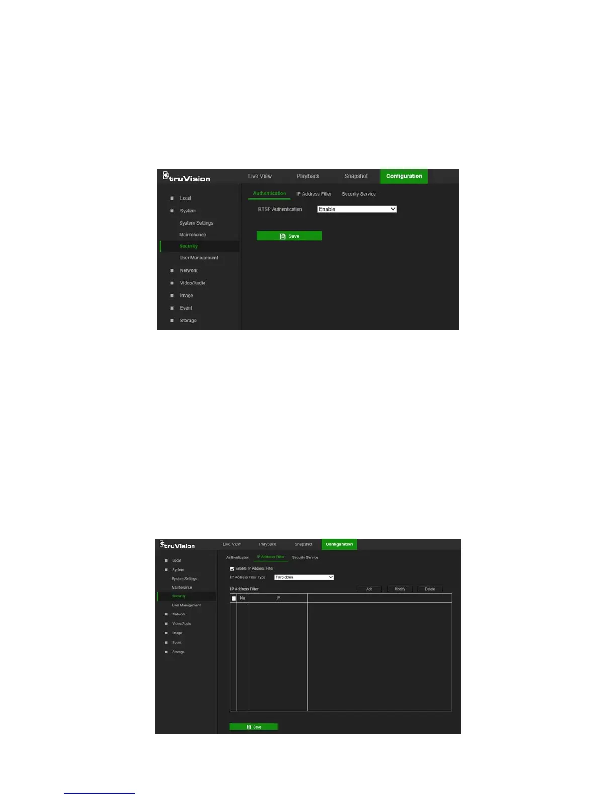 1. From the menu toolbar, click Configuration > System > Security >