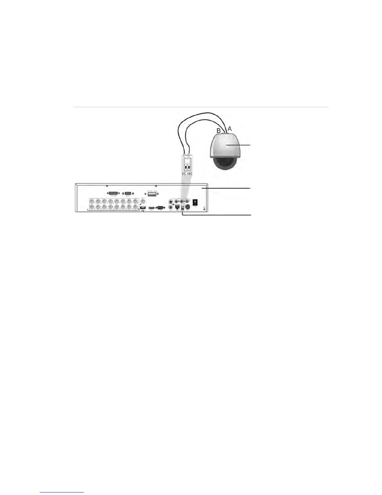 Figure 3: Connecting a PTZ dome camera to the DVR for control over the network