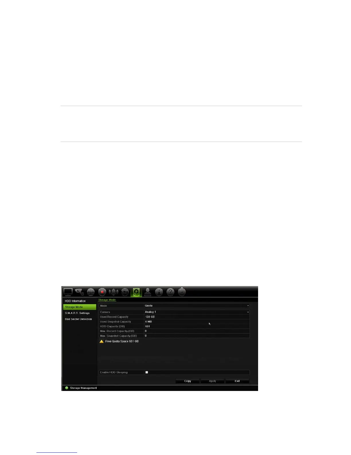 individual camera’s storage capacity using HDD quota management. This function lets