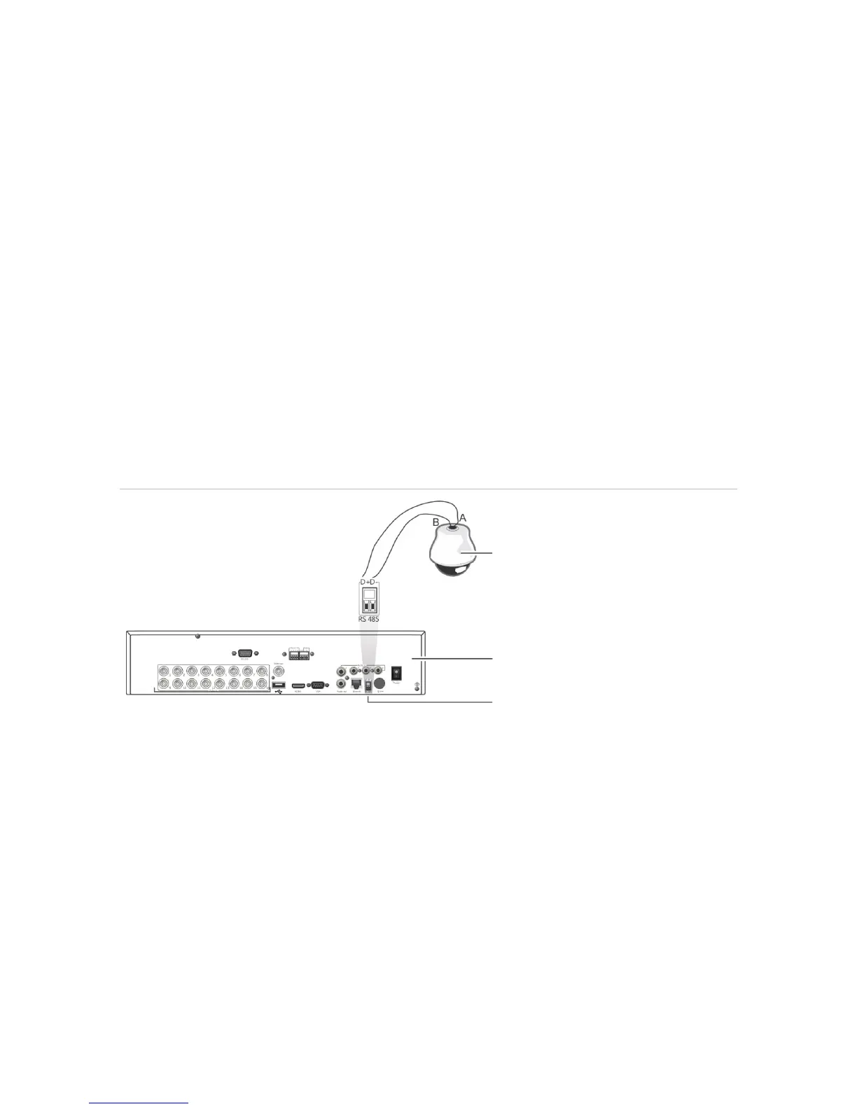 Figure 35: Connecting a PTZ dome camera to the recorder for control over the network
