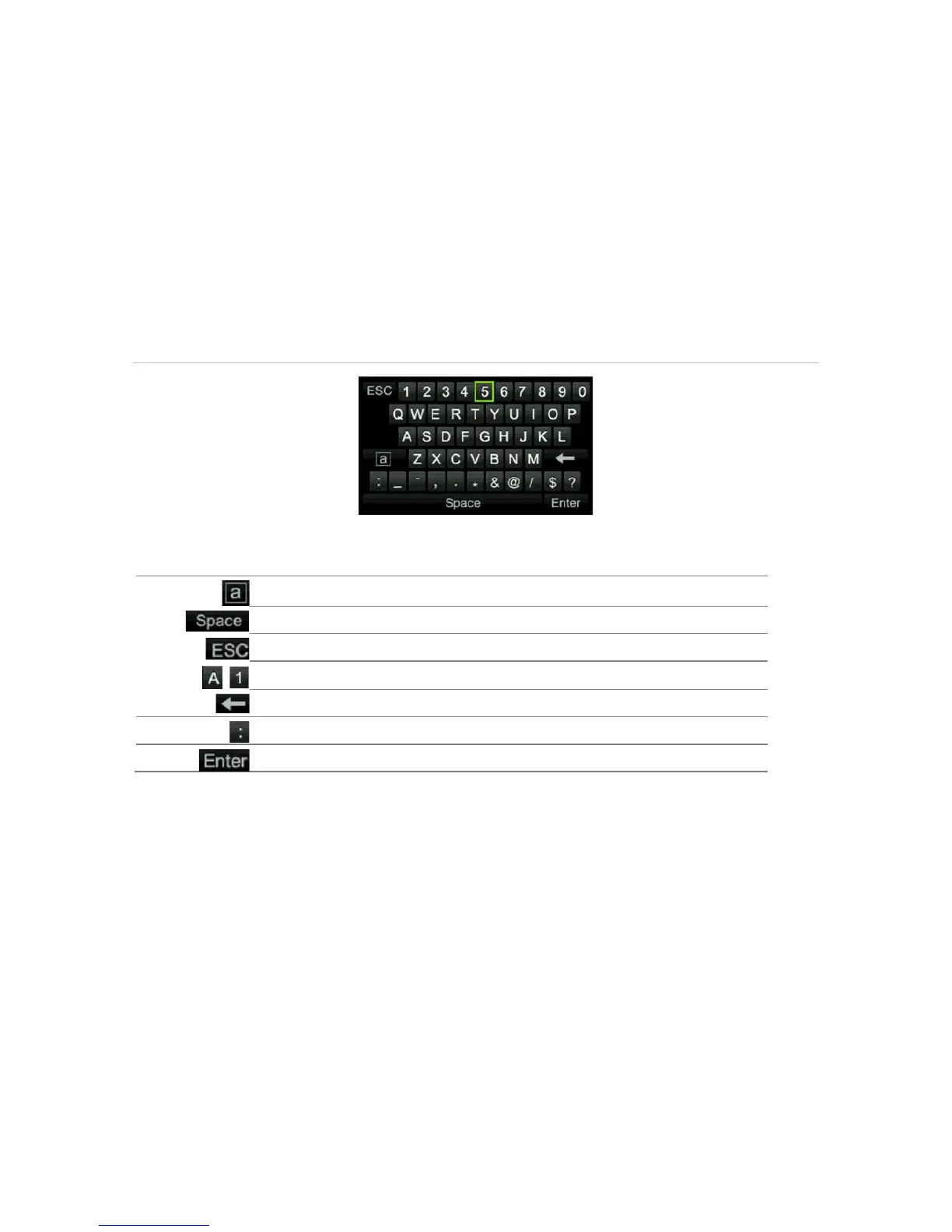 Description of the keys in the soft keyboard: