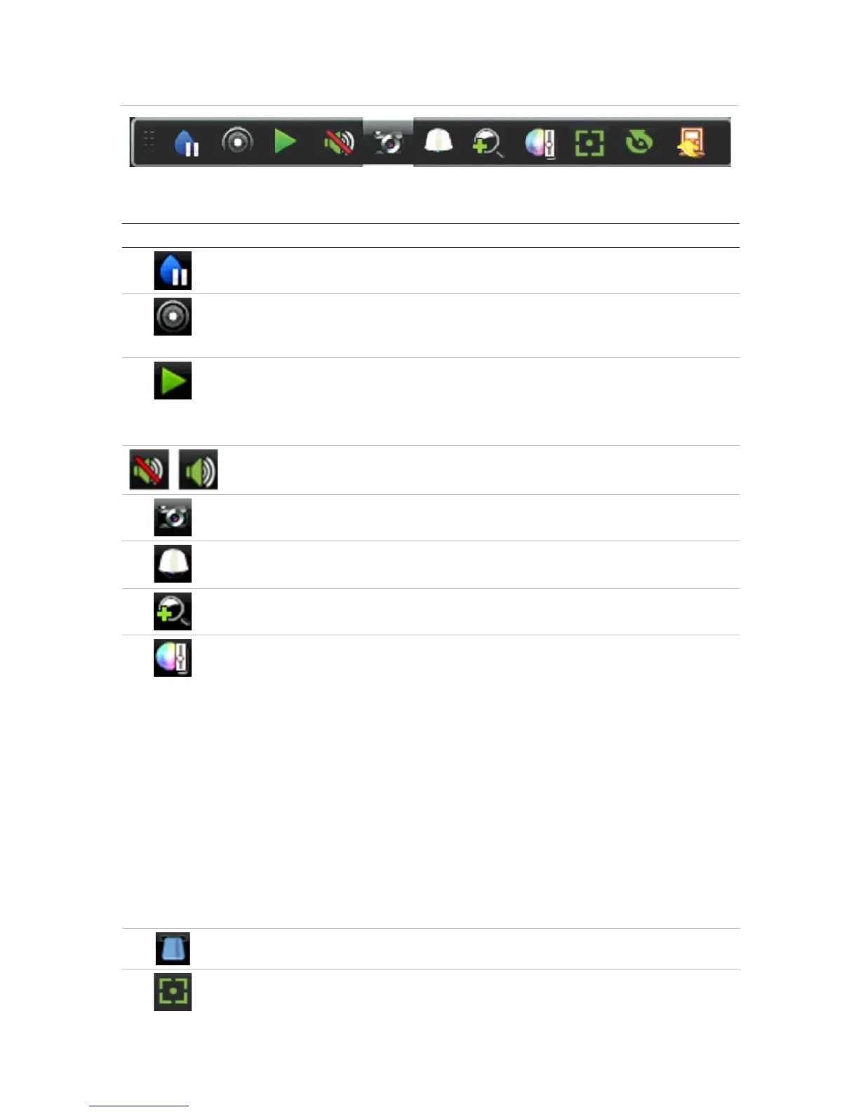 Table 8: Description of the live view toolbar icons