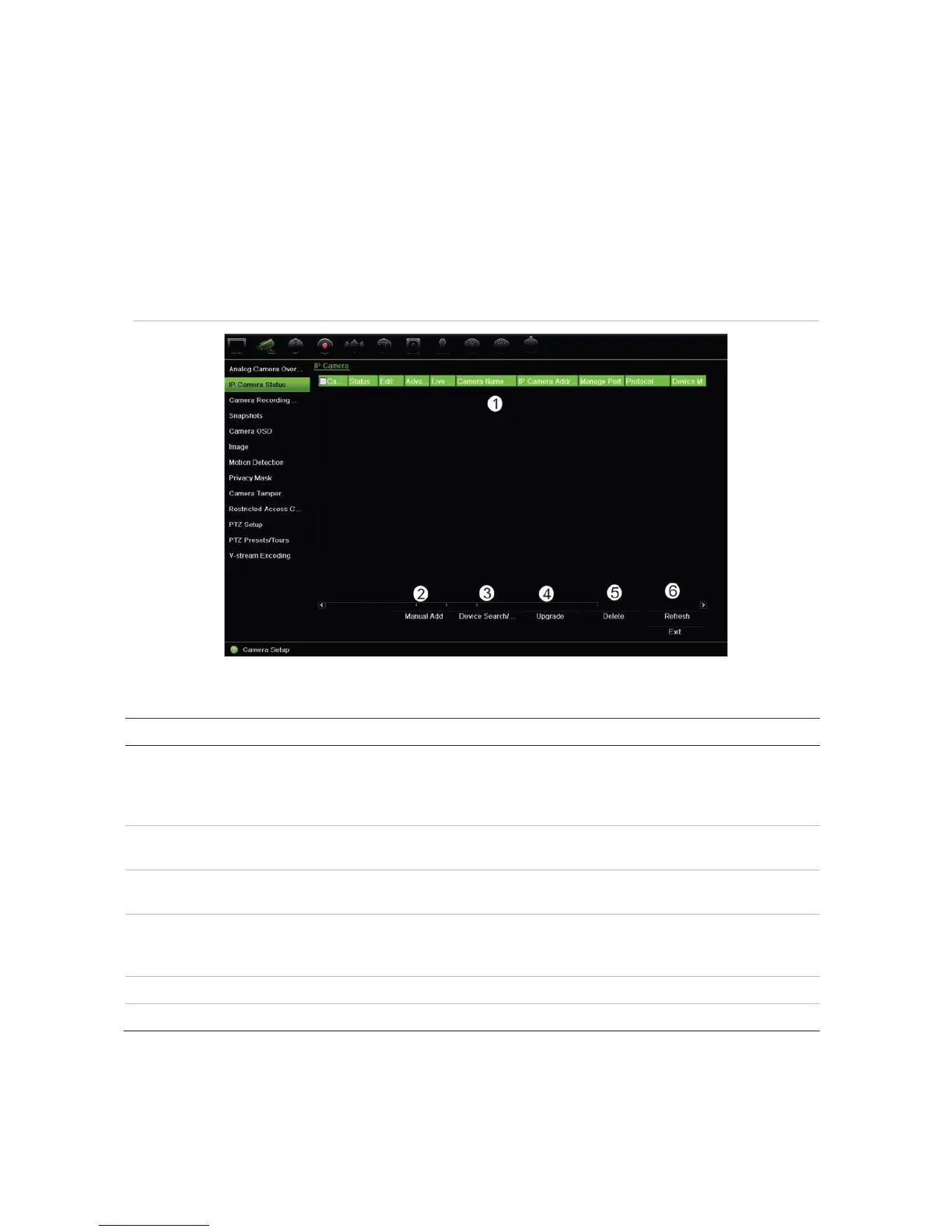 The IP camera status menu allows you to add, edit and remove cameras to the